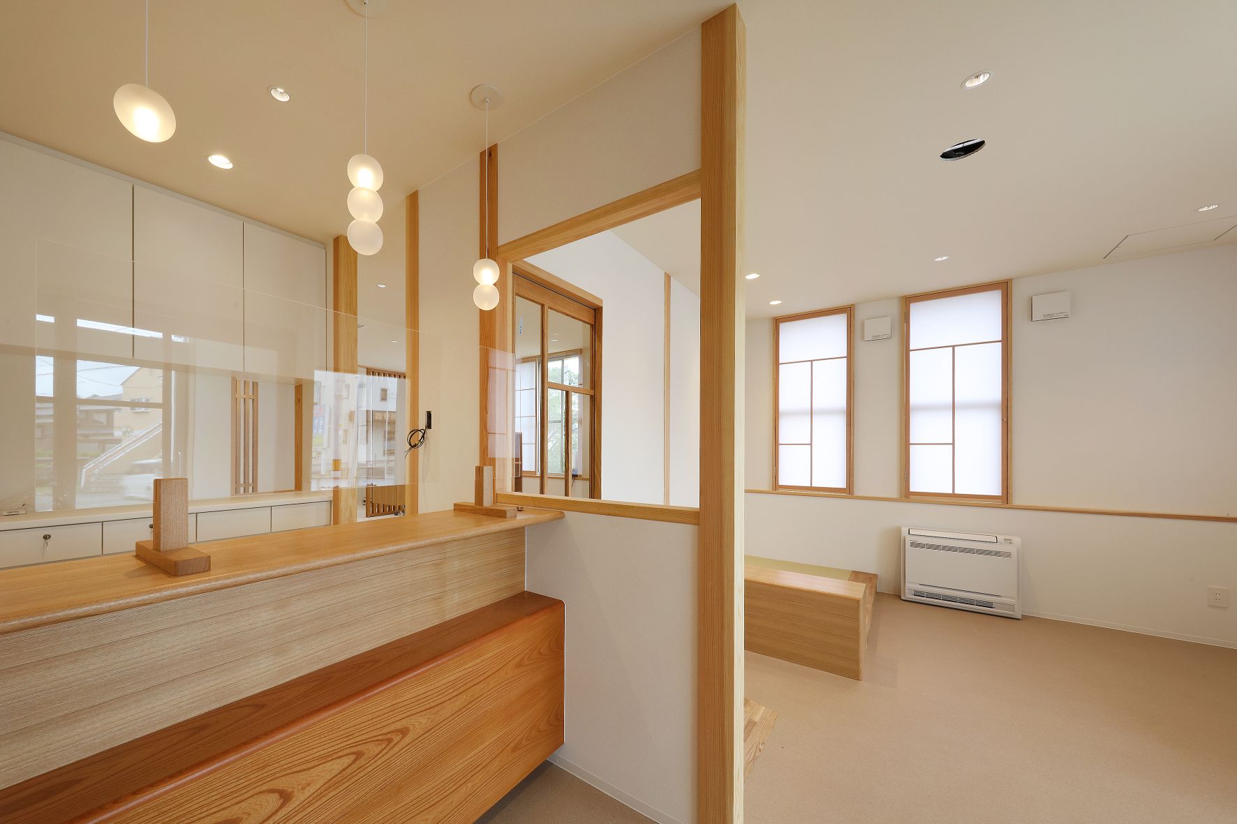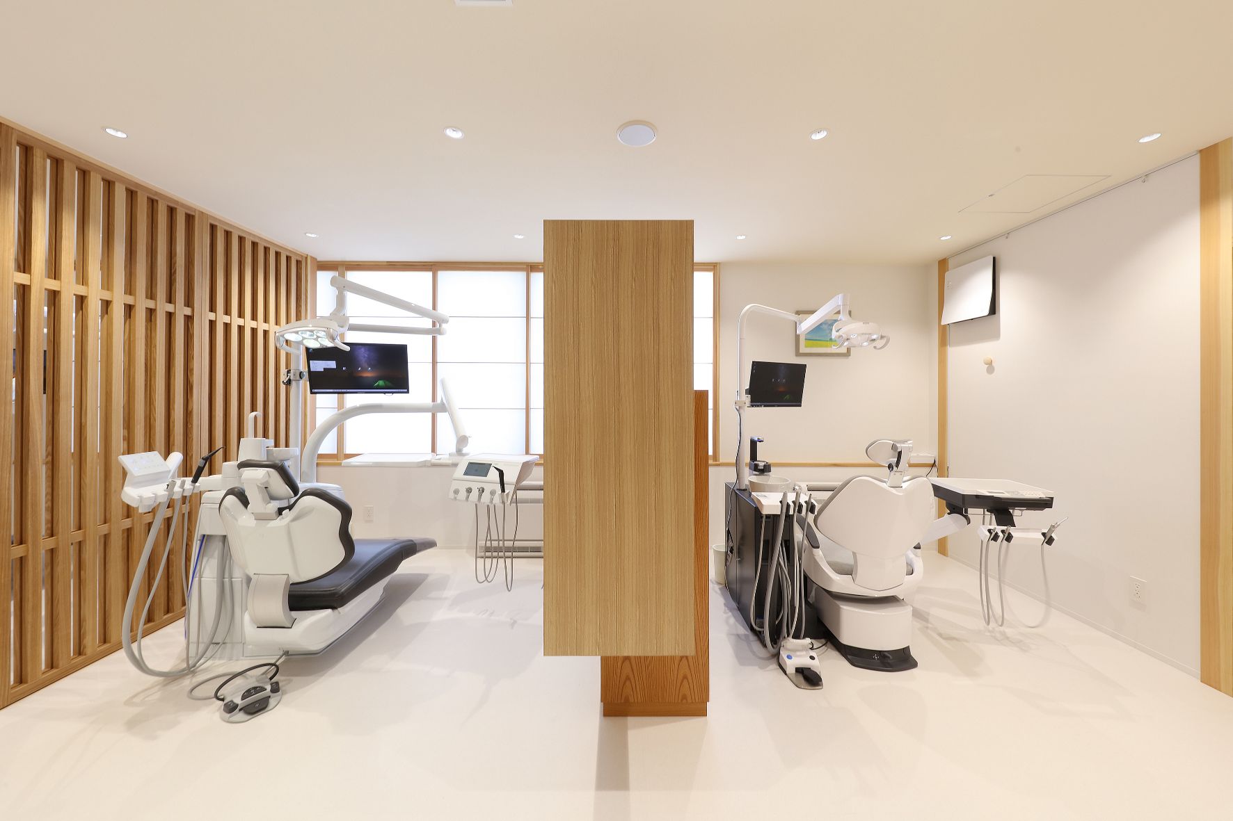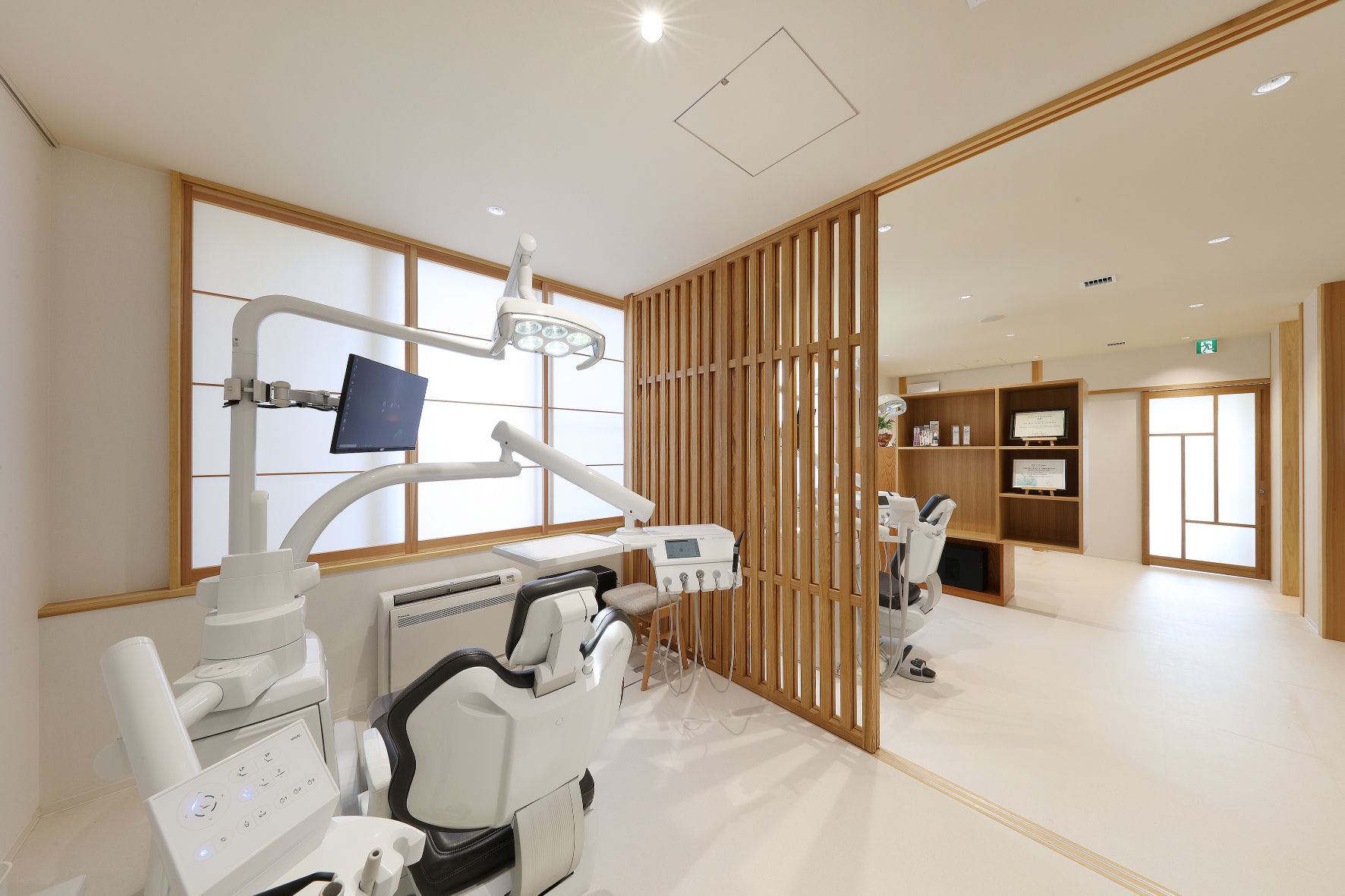 『きのした歯科医院』が完成しました。ご両親が長年地域診療を続けてこられたこの場所で、ご子息が診療に加わり、改修工事の運びとなりました。中に入ると温かい雰囲気で、訪れる患者さんを優しく迎えてくれます。木調のインテリアは大人も子供も落ち着ける空間になっています。