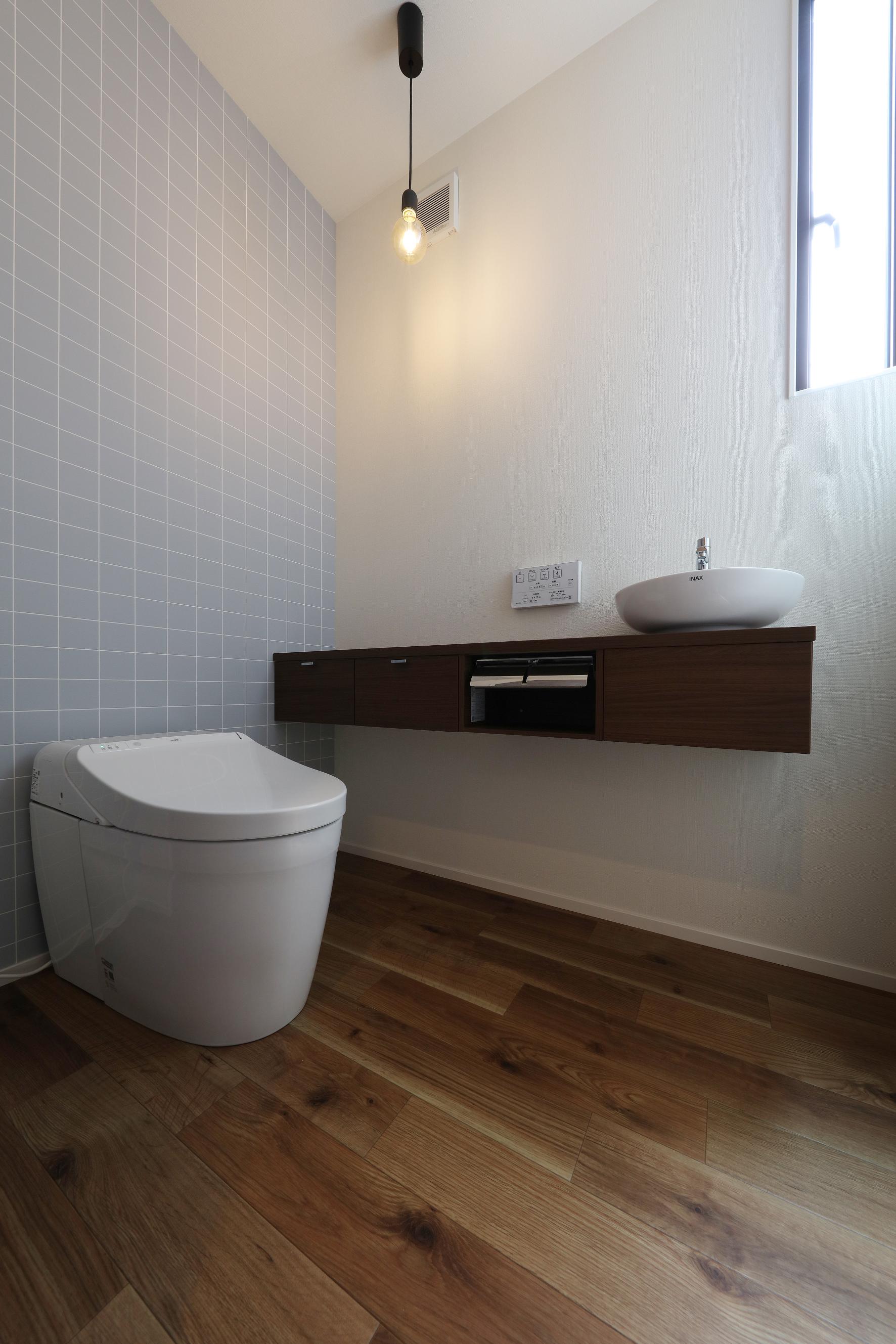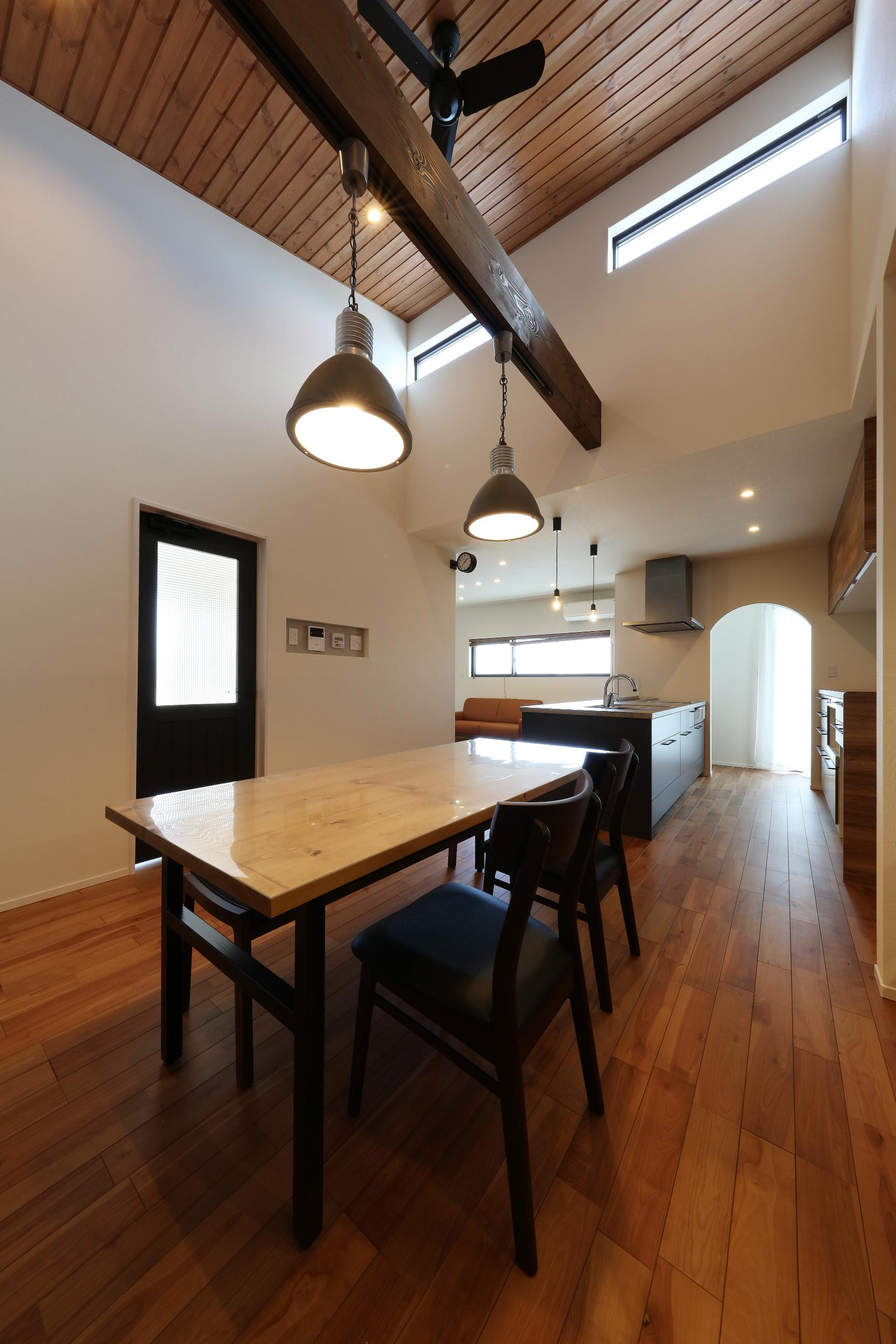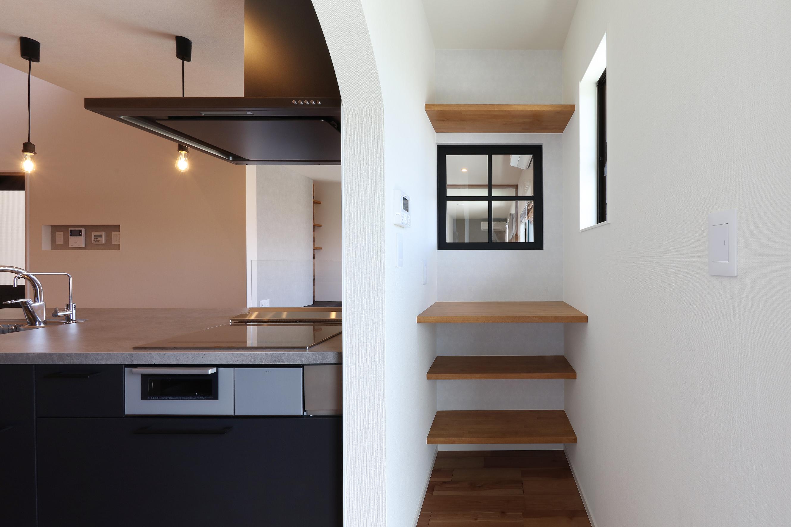 モダンヴィンテージのテイストをベースに、随所に遊び心とこだわりを散りばめた平屋住宅です。 空間ごとに表情のある素材や色合いを取り入れ、住まい全体に落ち着きと個性をバランスよくまとめました。 造作の棚やデスクを各所に設え、暮らしにフィットする使いやすさと居心地の良さを実現。 照明計画にもこだわり、ひとつひとつの照明器具を丁寧にセレクト。住まう人の自分らしさが映える雰囲気を演出しています。