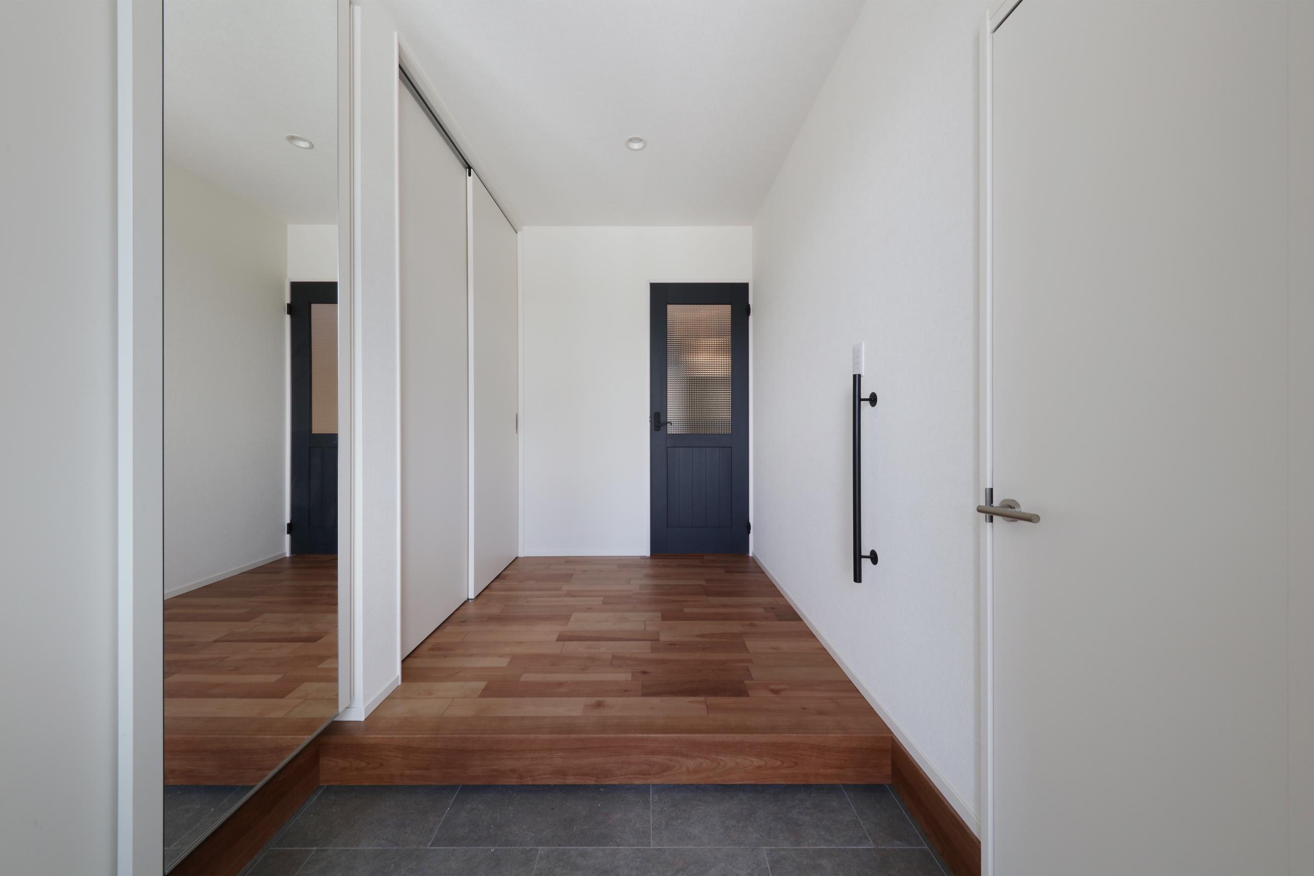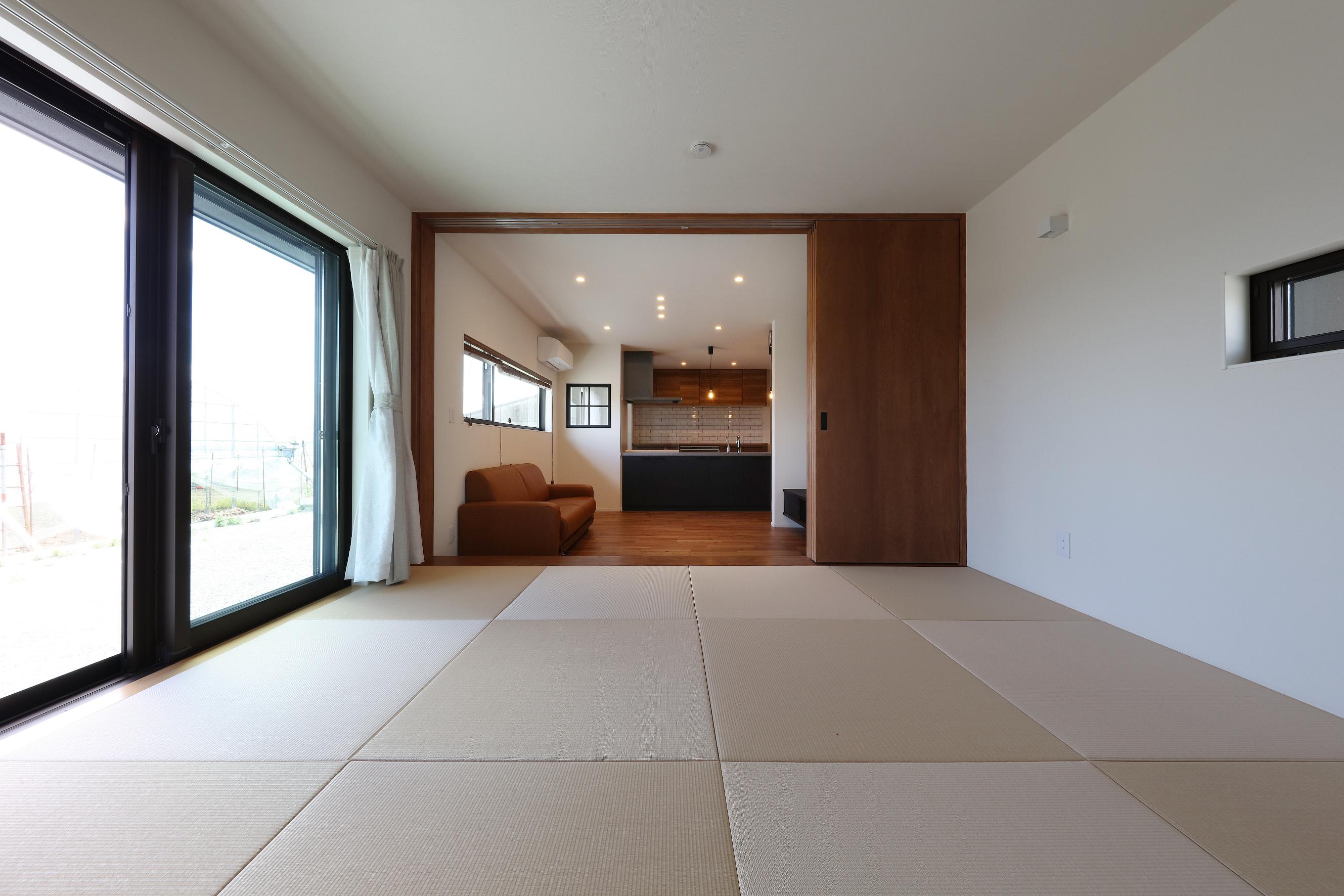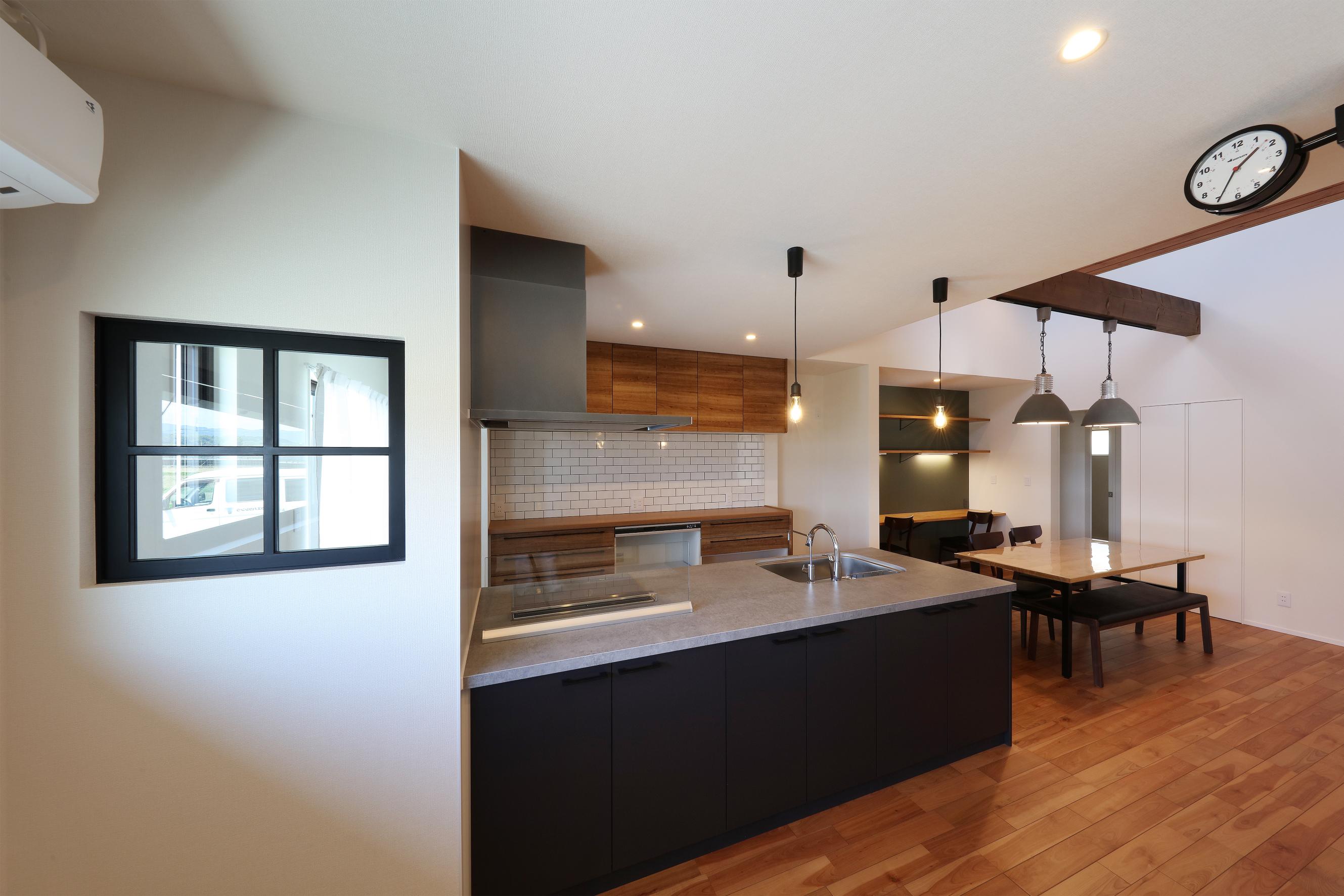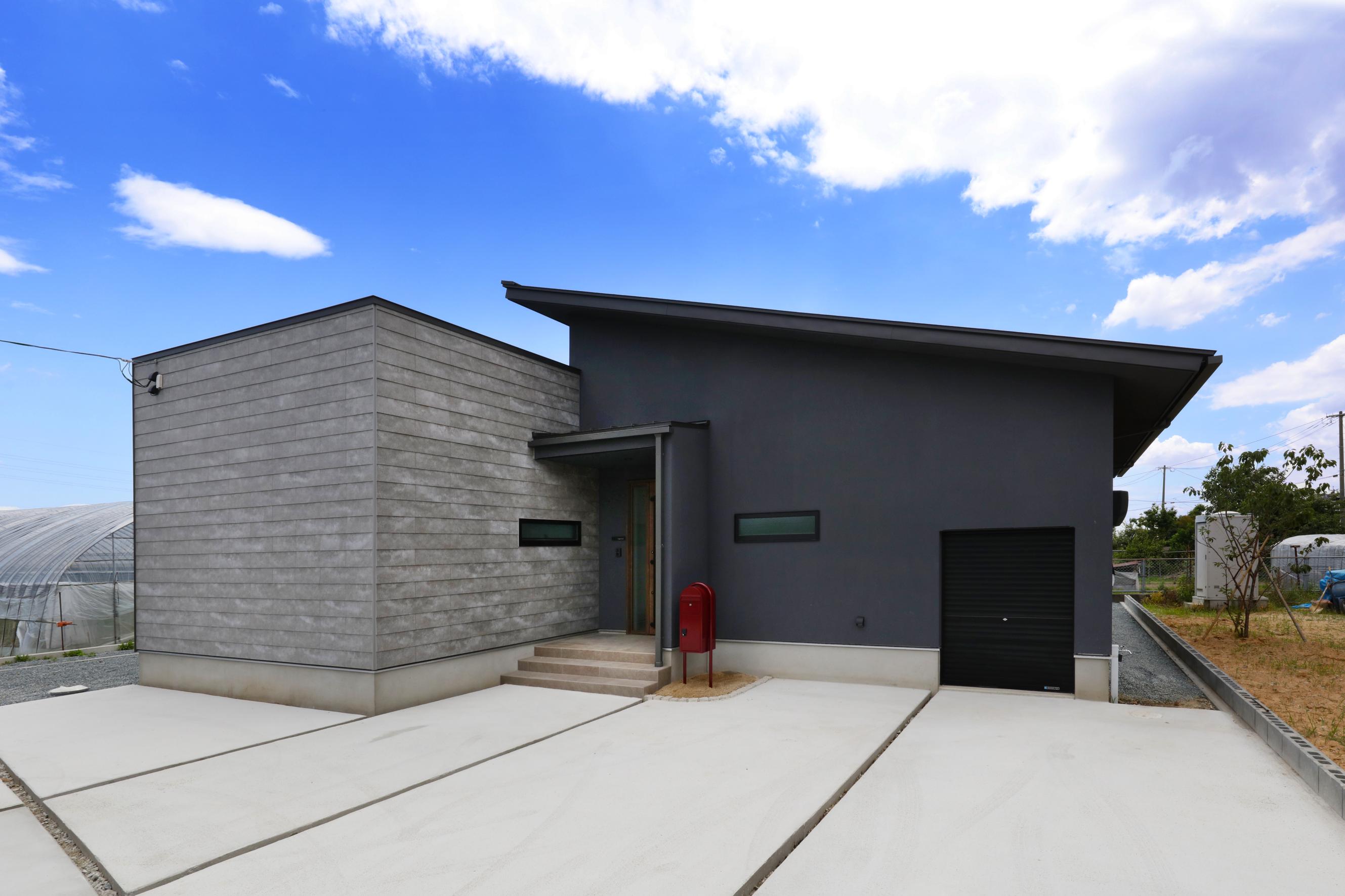 モダンヴィンテージのテイストをベースに、随所に遊び心とこだわりを散りばめた平屋住宅です。 空間ごとに表情のある素材や色合いを取り入れ、住まい全体に落ち着きと個性をバランスよくまとめました。 造作の棚やデスクを各所に設え、暮らしにフィットする使いやすさと居心地の良さを実現。 照明計画にもこだわり、ひとつひとつの照明器具を丁寧にセレクト。住まう人の自分らしさが映える雰囲気を演出しています。