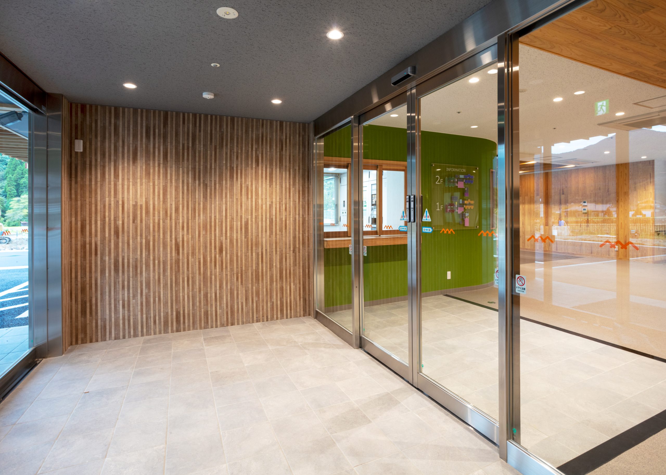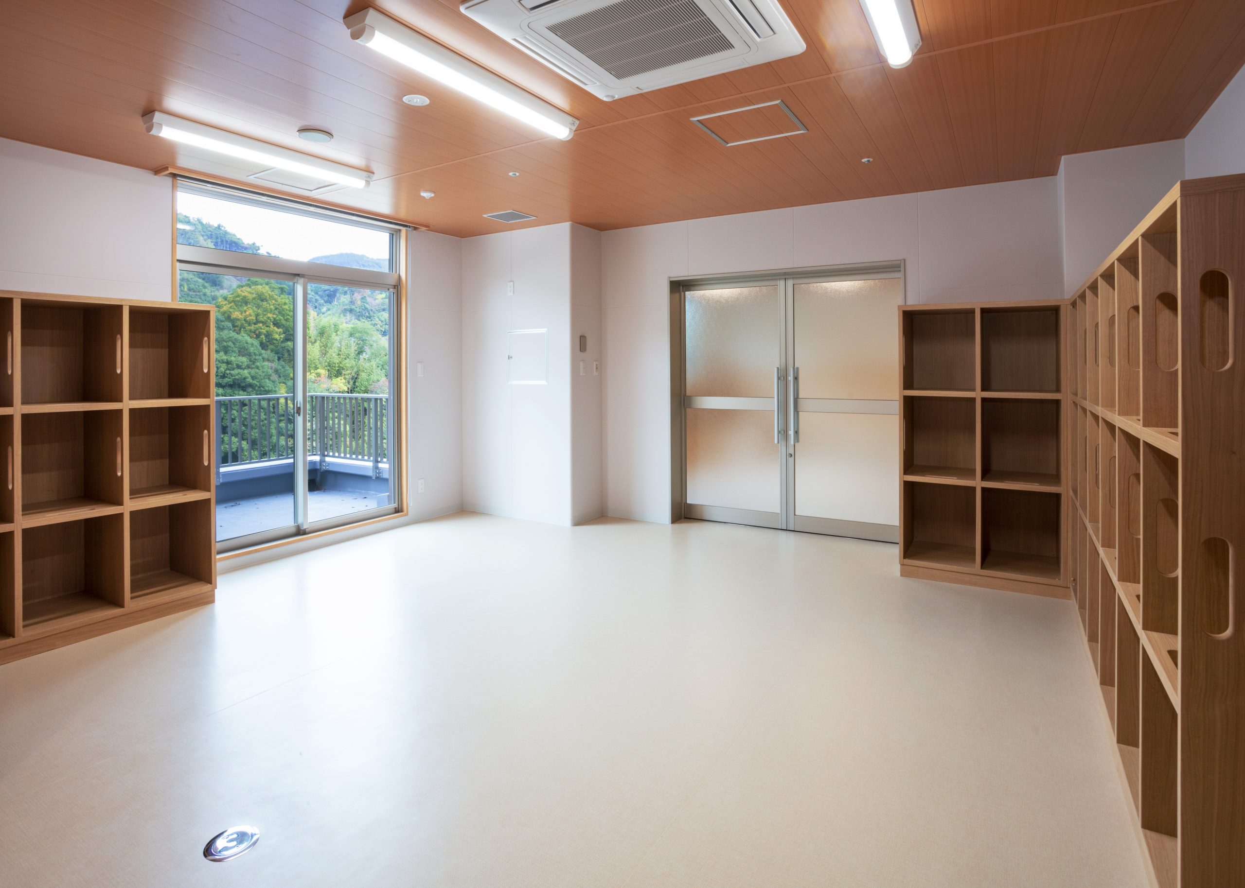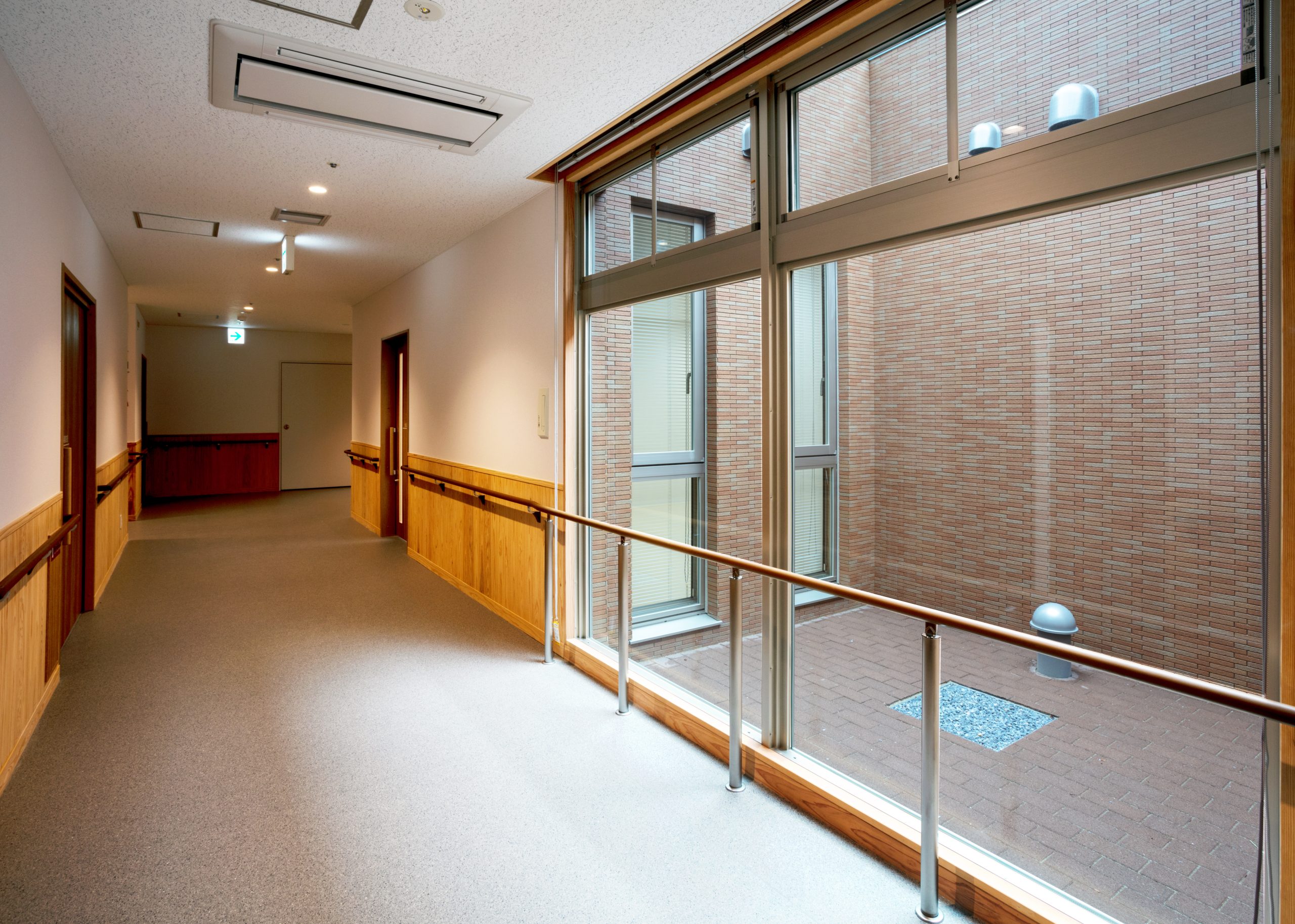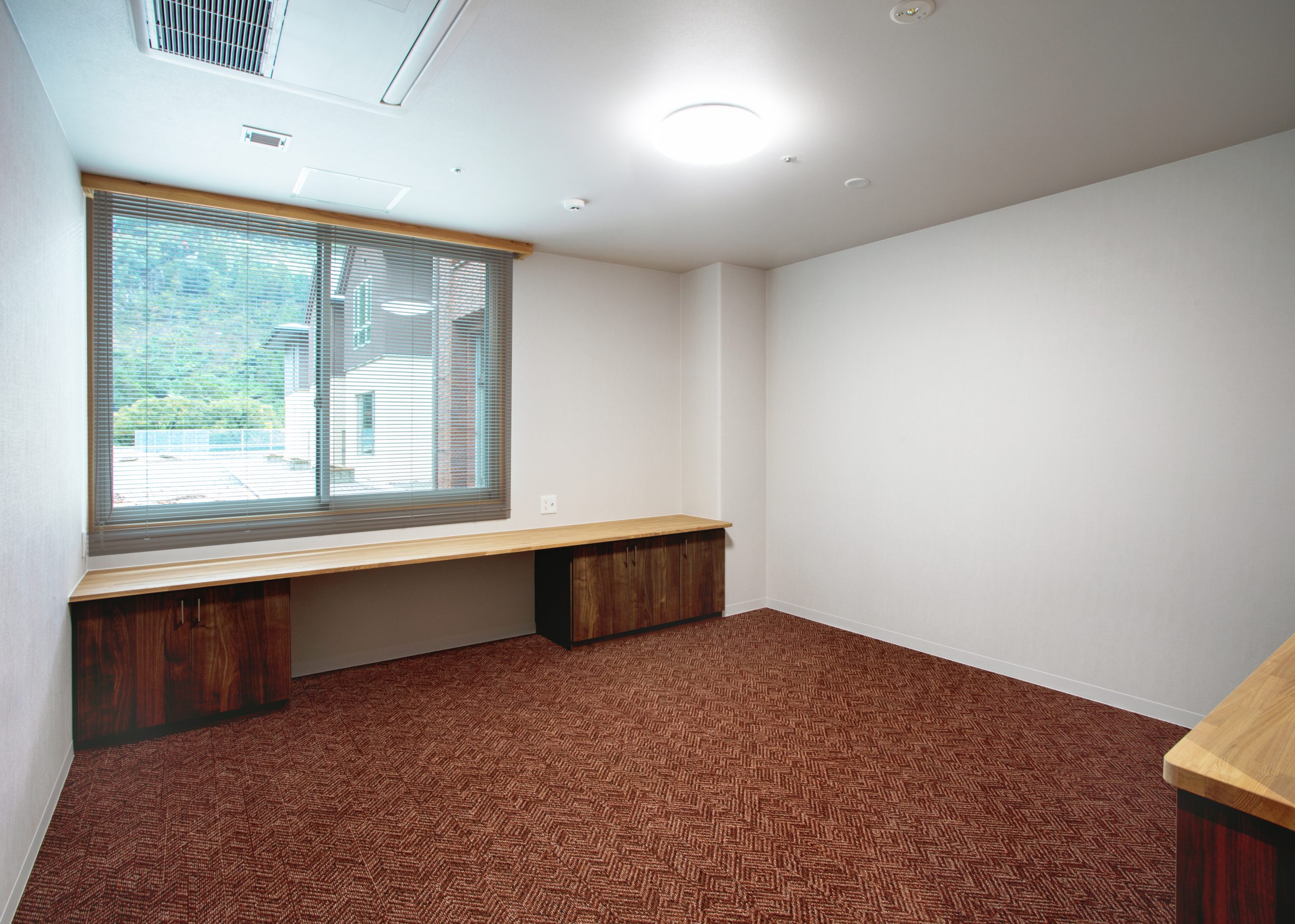 ”日本で最も美しい村”福岡県八女市星野村に、弊社が施工した『特別養護老人ホーム 星寿園』が移転開設しました。 「星野村の風景と地域に寄り添い、すまいと交流の拠点となる施設」がコンセプトで、外観は星野村の集落をイメージし、木をふんだんに使った切妻屋根の小さなお家が寄り集まったようなつくりです。 居住棟2階は、木造とし(その他の構造は鉄筋コンクリート造+一部鉄骨造)、内部空間もできるだけ木質化するなど、日常的に木の温もりを感じることができます。 個室の設置、多床室には木製のパーテーションを設けることで感染症対策、プライバシーの確保ができるように工夫され、ベッドサイドには窓があり明るい空間となっています。 (※八女市星野村は「日本で最も美しい村連合」に加盟)