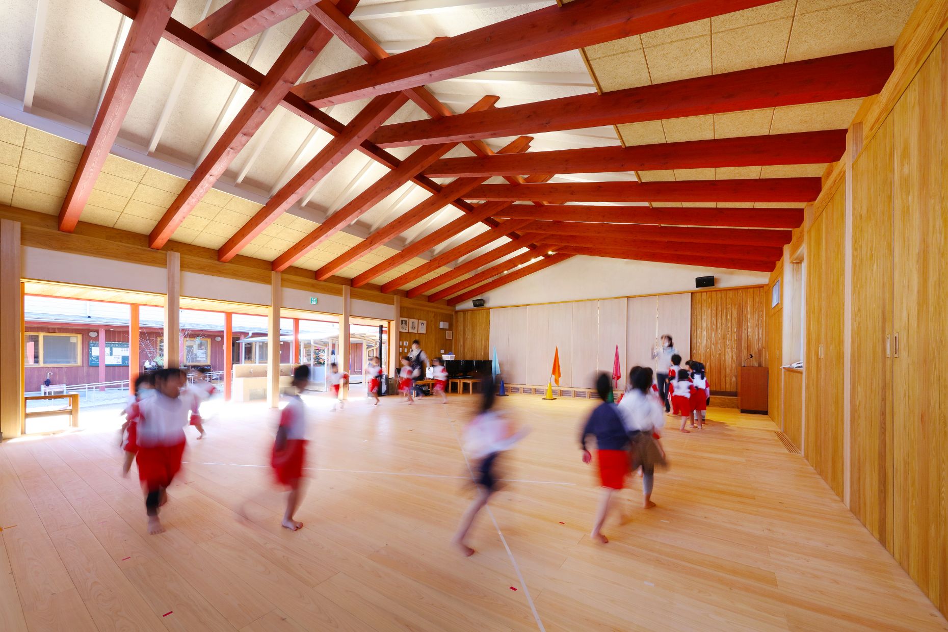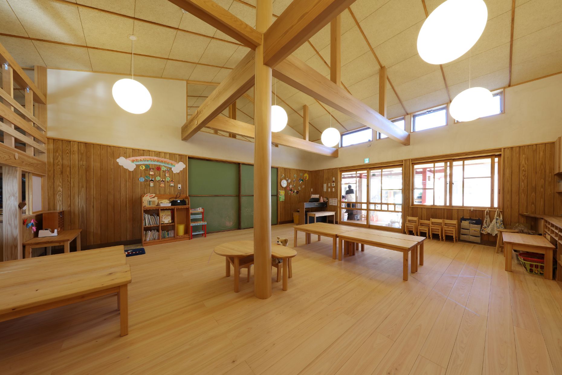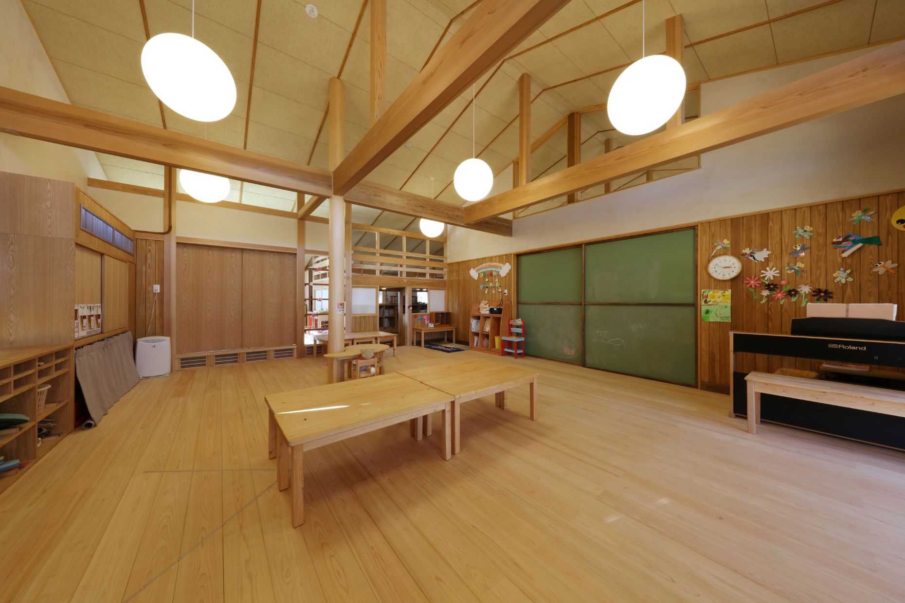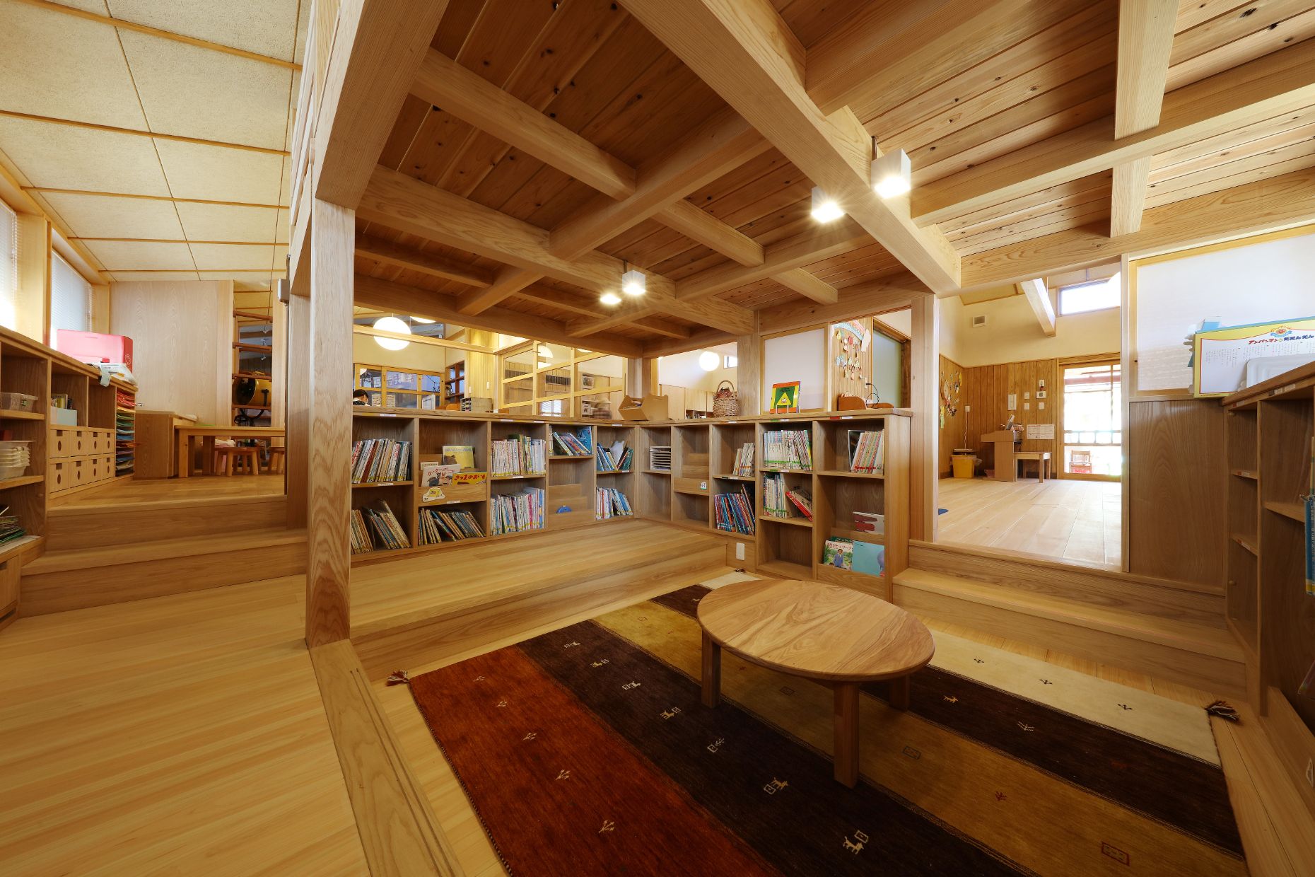 無垢の木をふんだんに用いた温かみのある雰囲気。陽だまりのような子どもたちの笑顔があふれる幼稚園です。 ・・・・・・・・・・・・・・・・・・・・・ 2022年11月 第8回福岡県木造・木質化建築賞 木質化の部大賞を受賞しました。