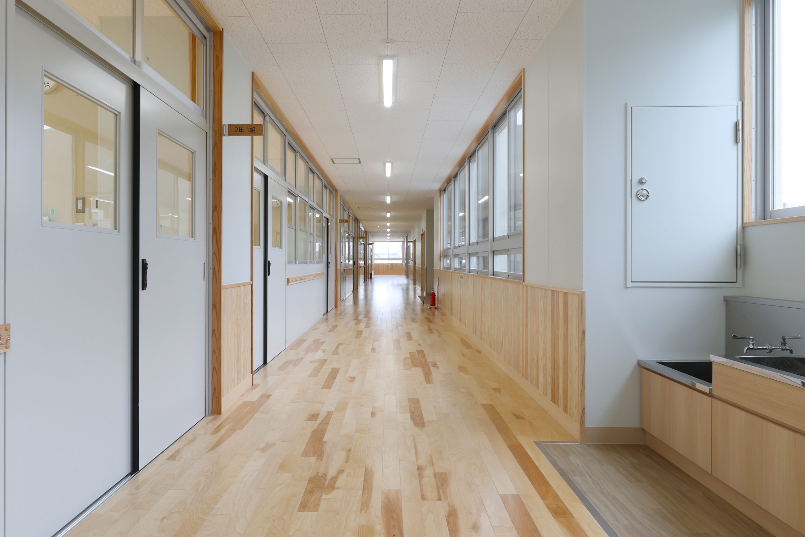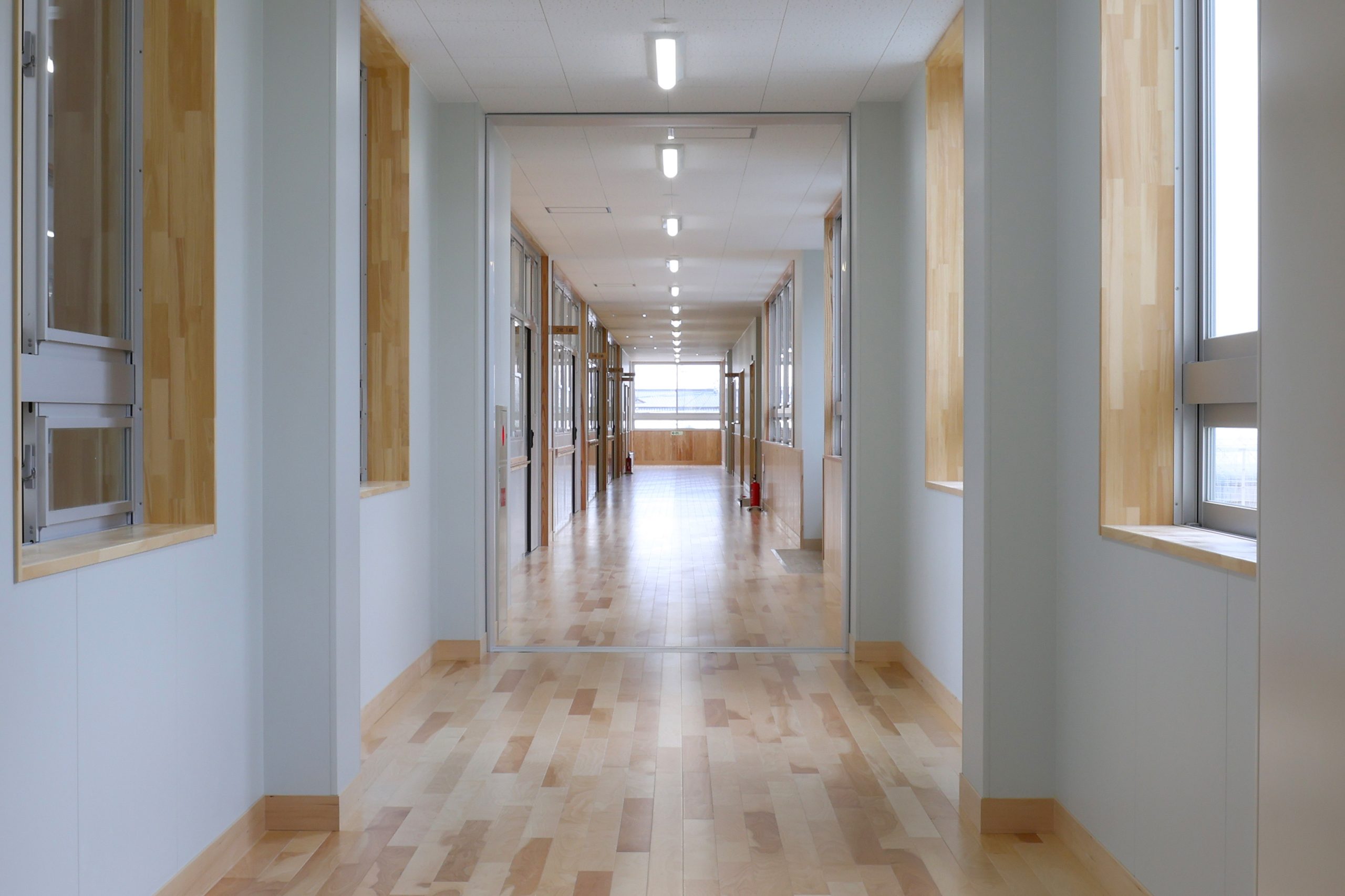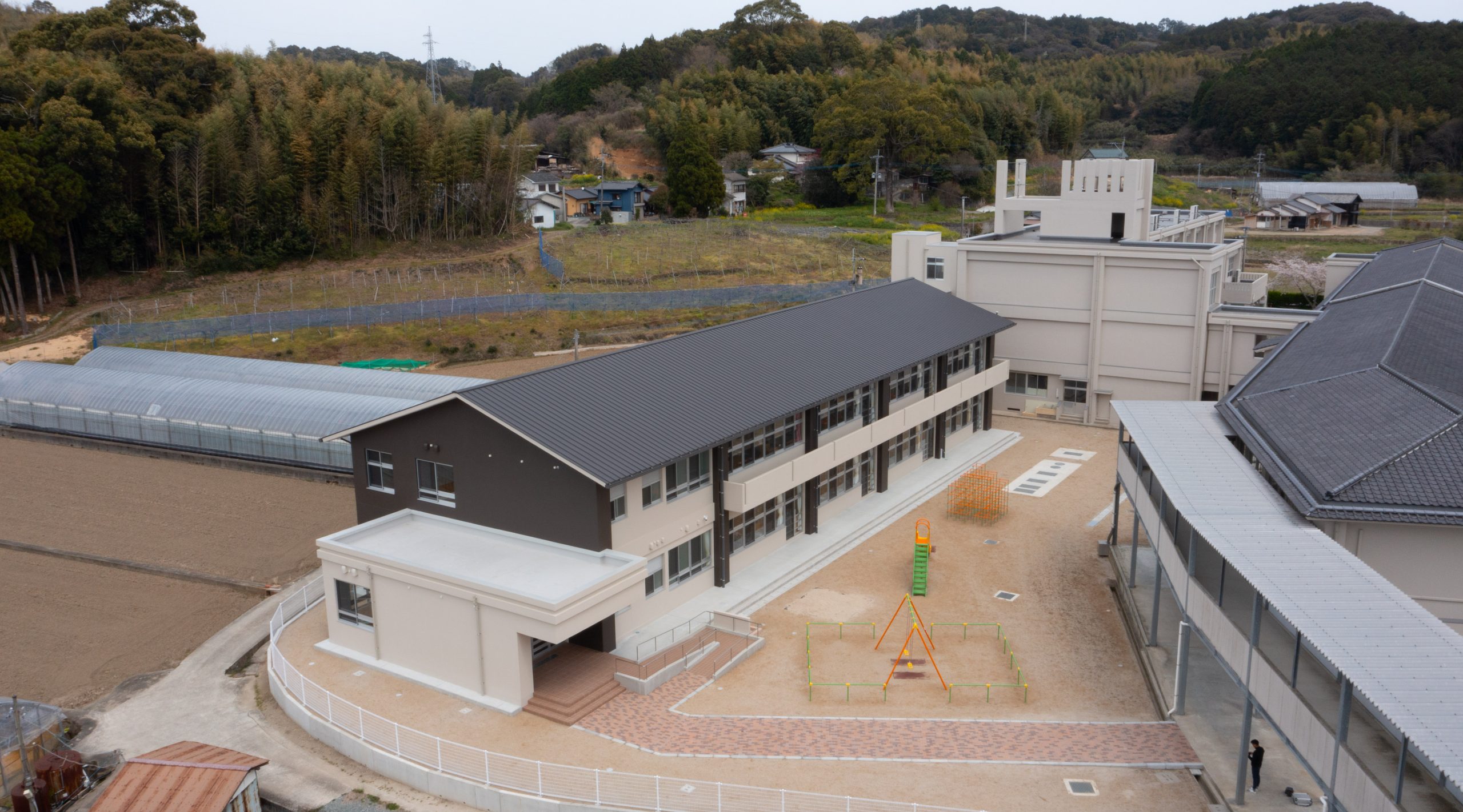 令和7年4月1日に開校したみさき学園です。 こどもたちが心地よく過ごせる空間を創造しました。