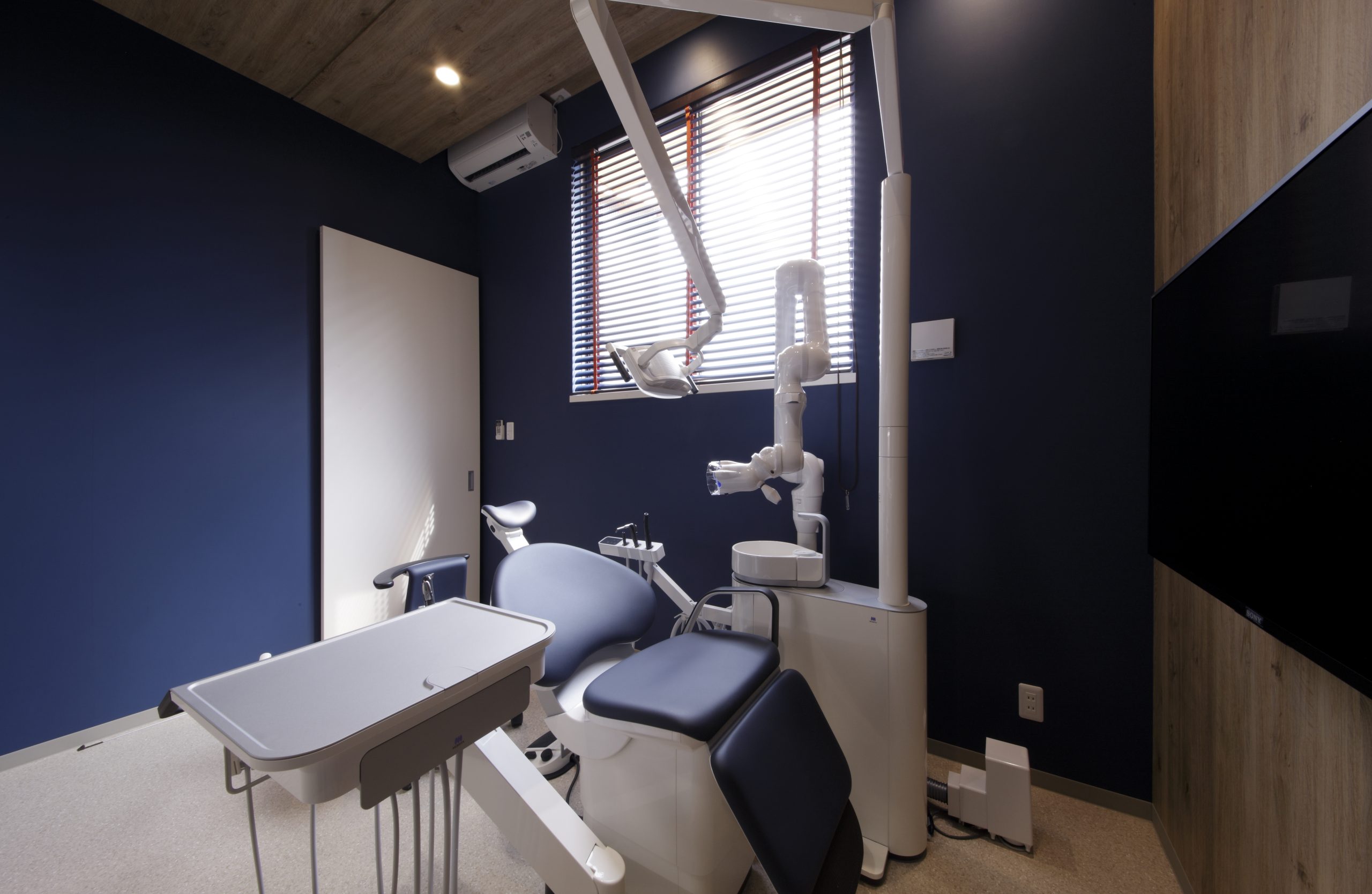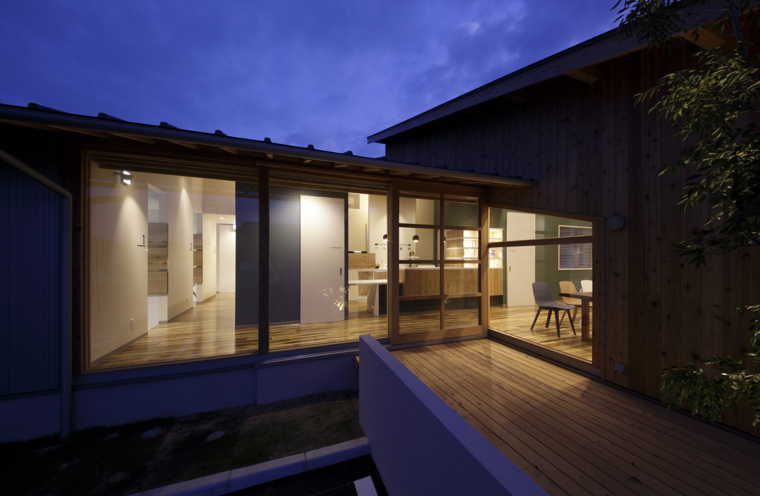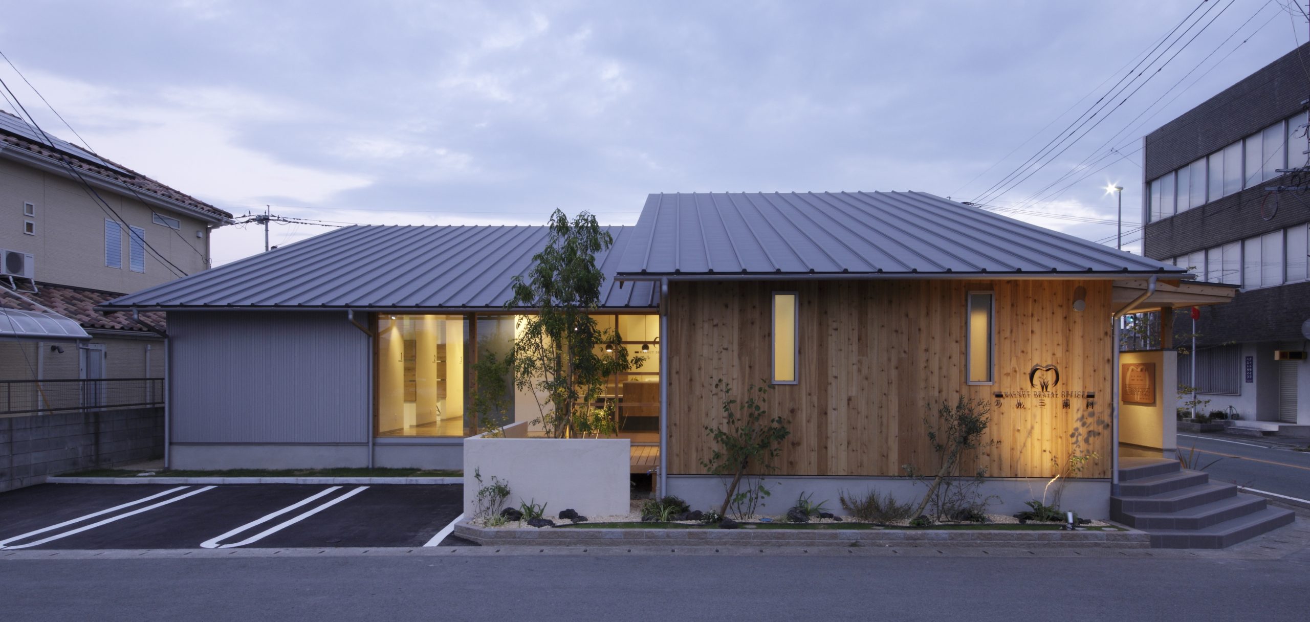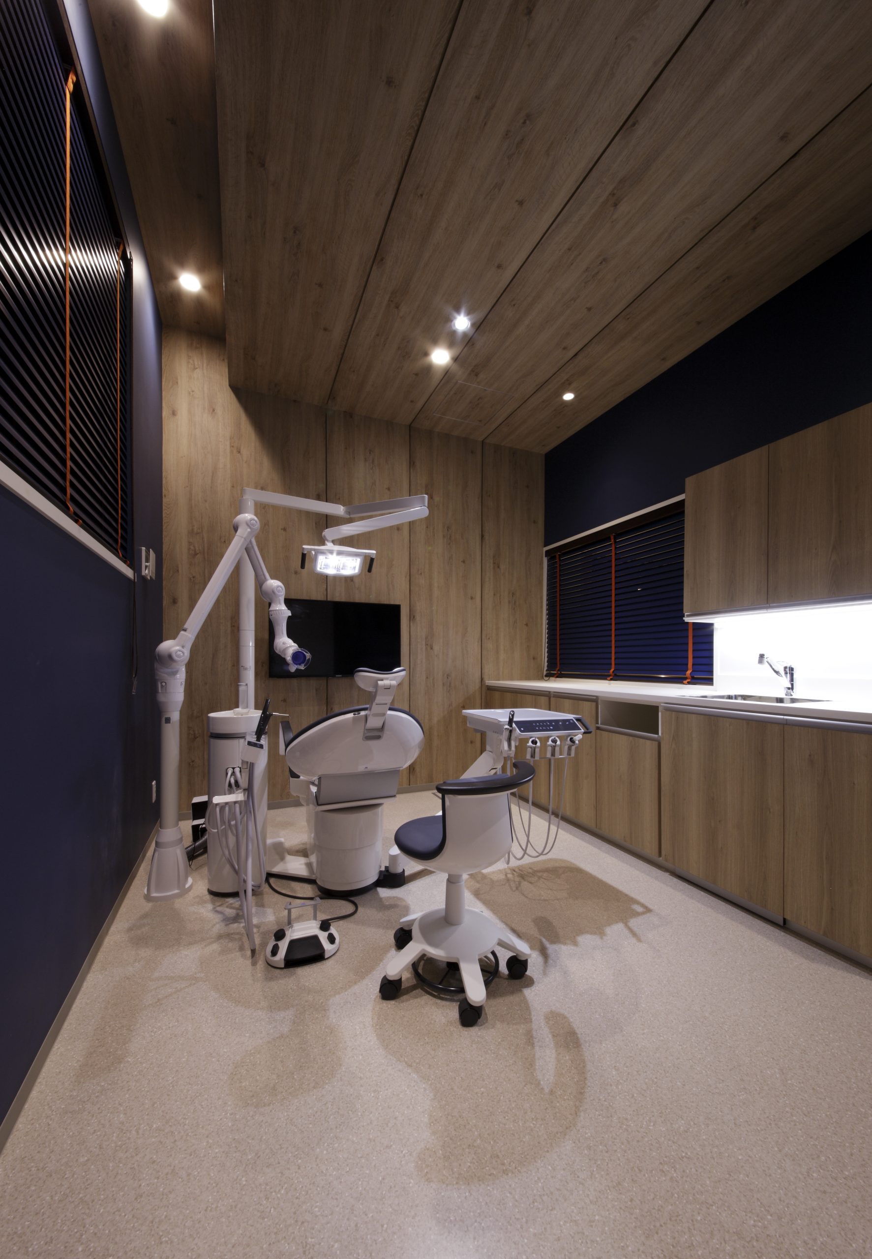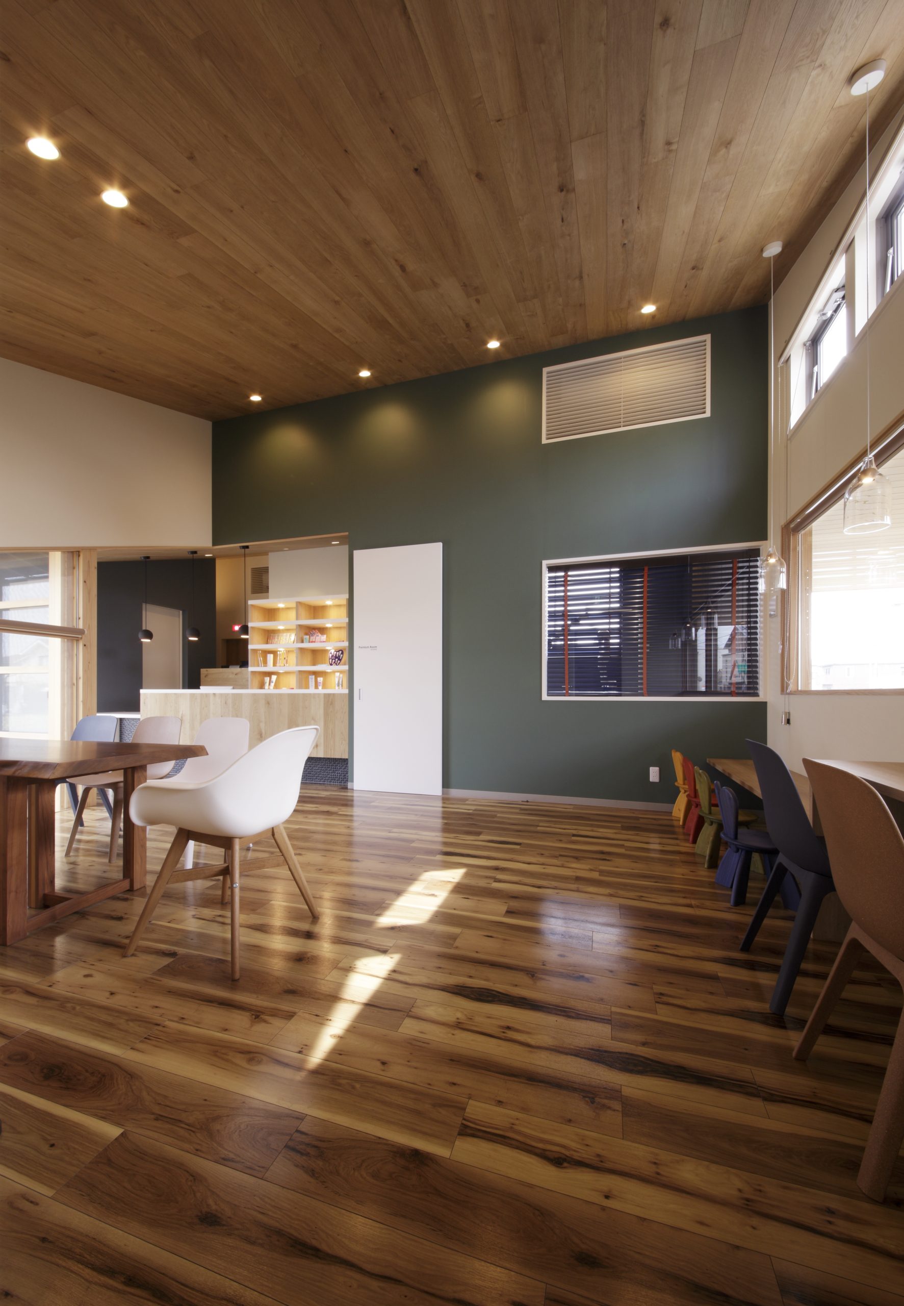 まるでカフェのようなかわいらしい外観。節のある素朴な木目と傾斜した天井は、患者様をリラックスさせます。