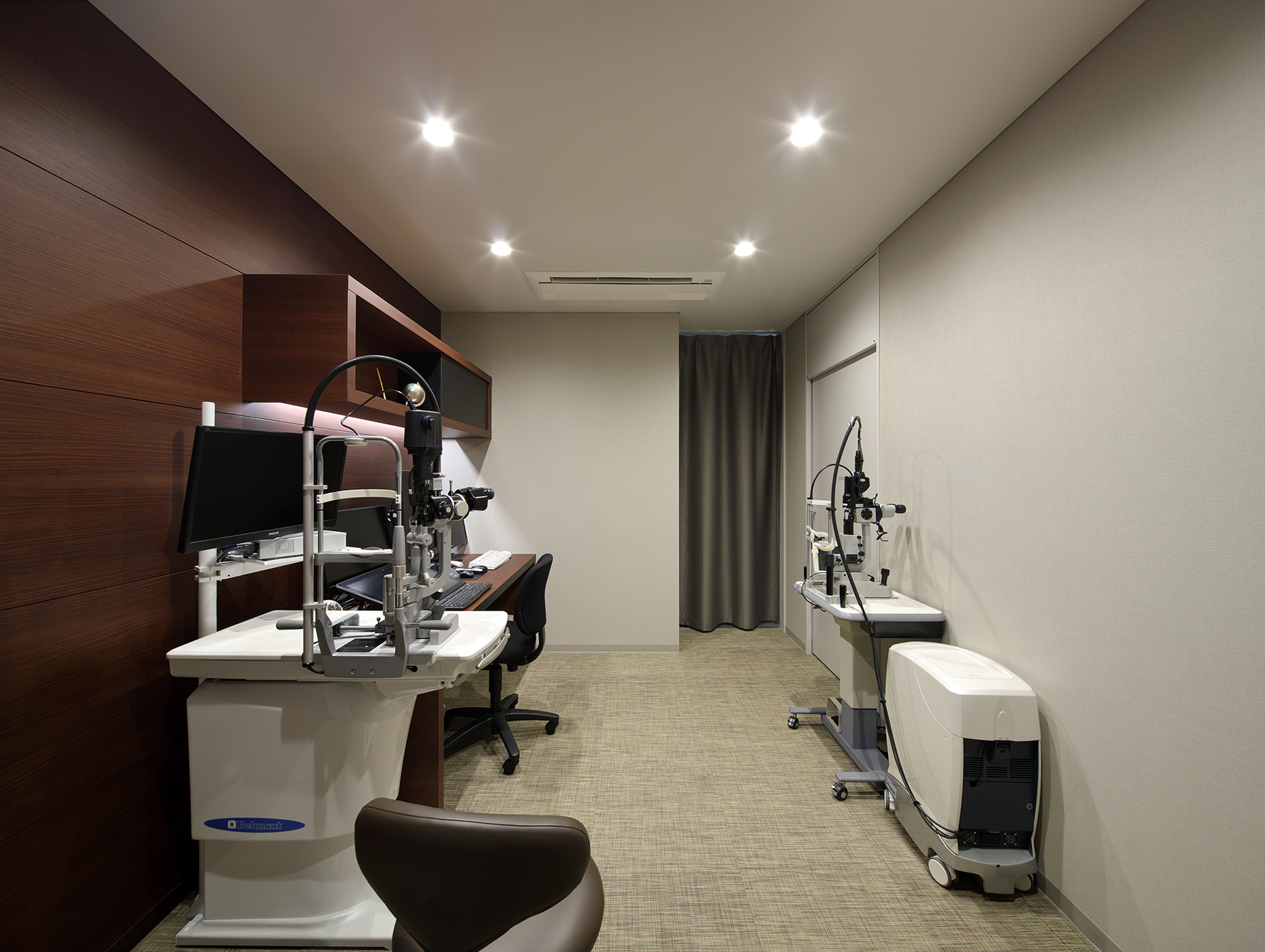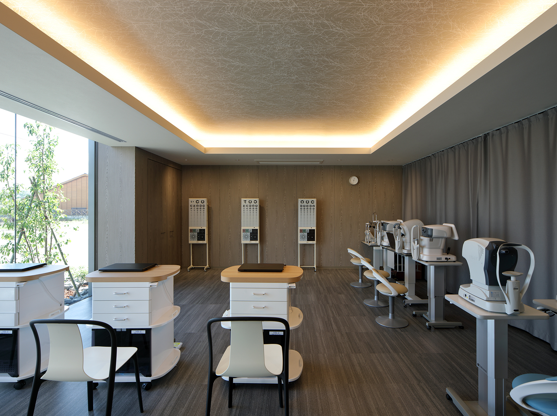 機能性はもちろん、患者さんや医療スタッフの快適性を重視しました。圧迫感のないワンフロアの待合室からはグリーンが穏やかな光に映えています。