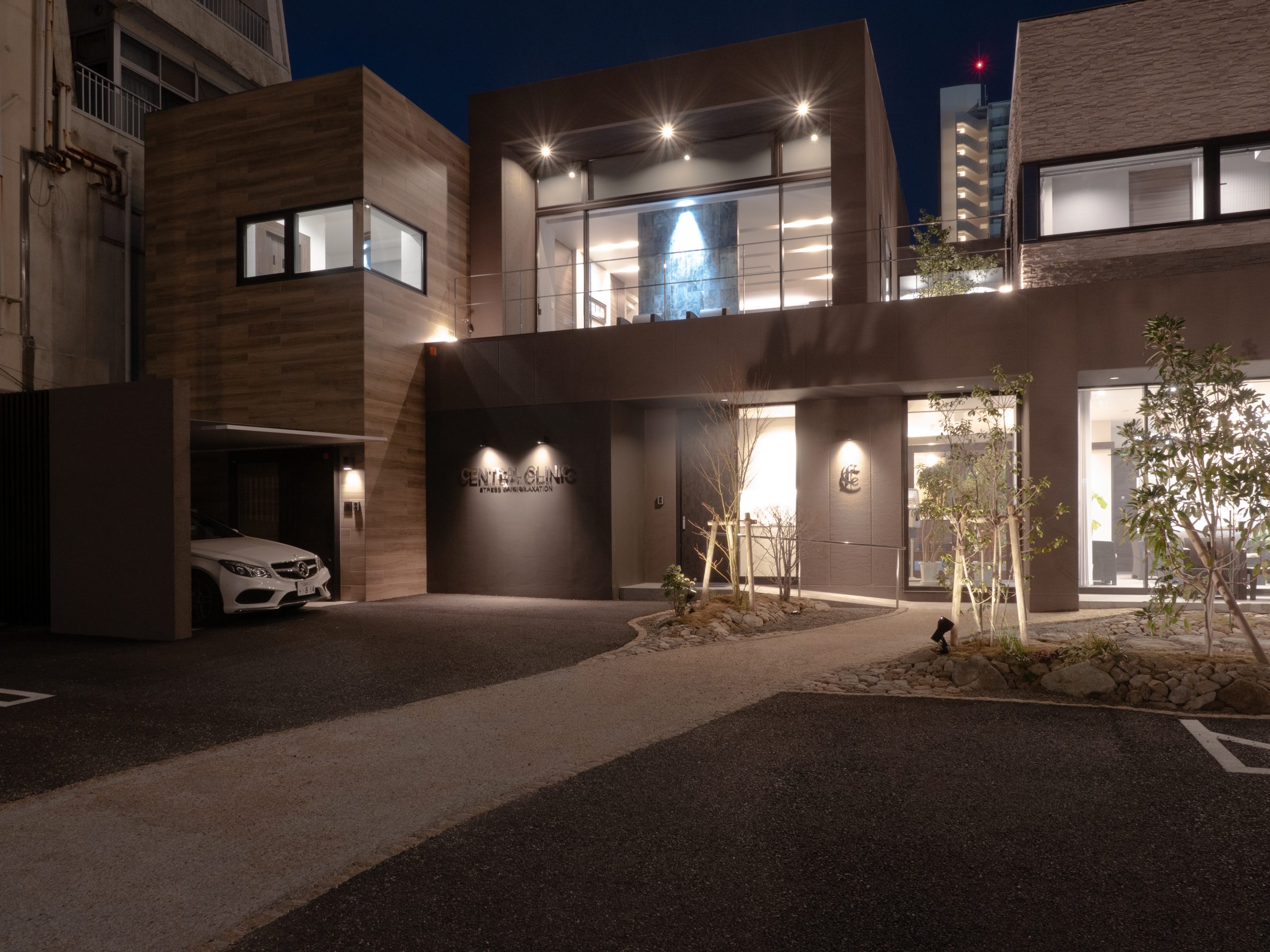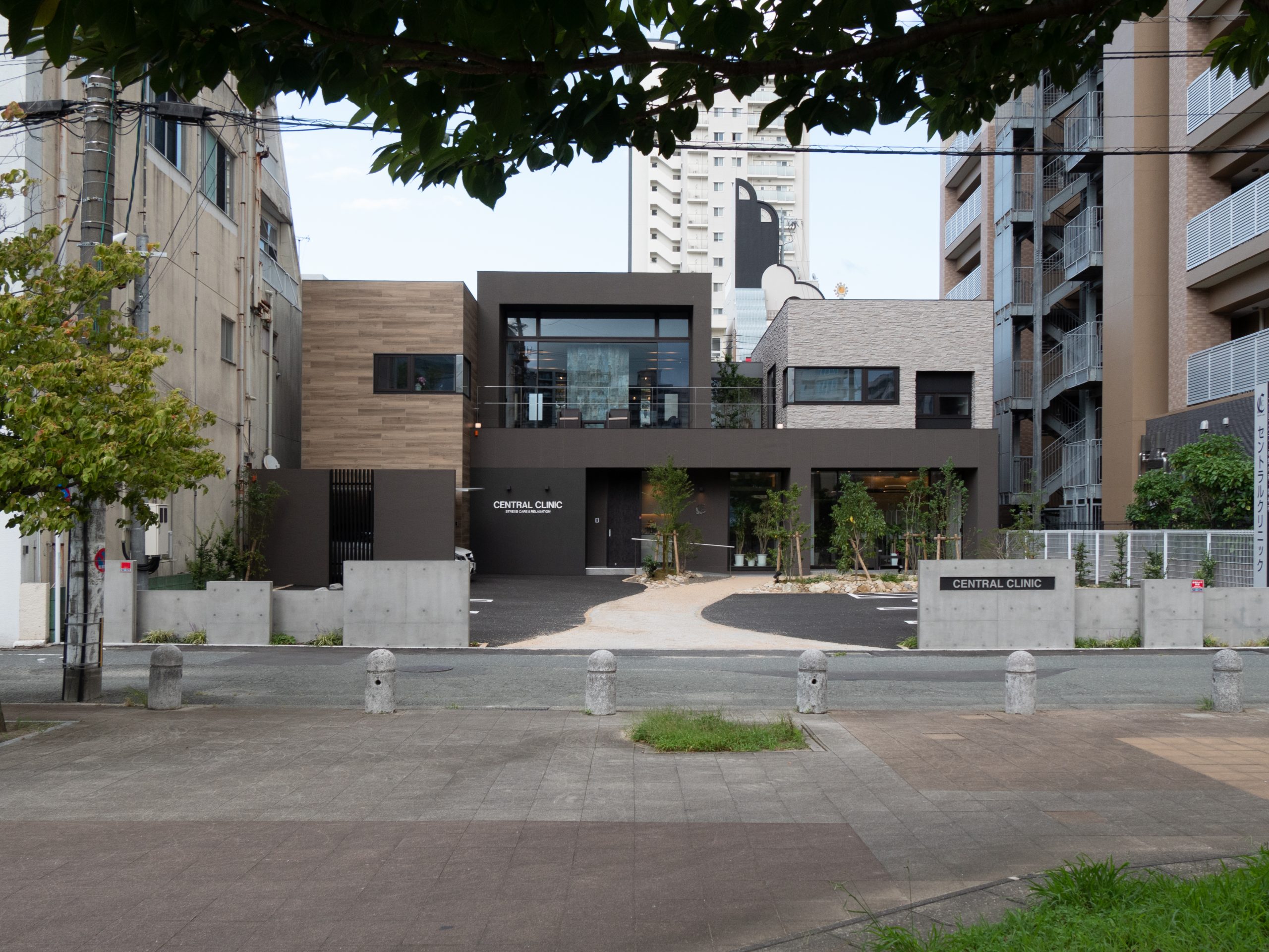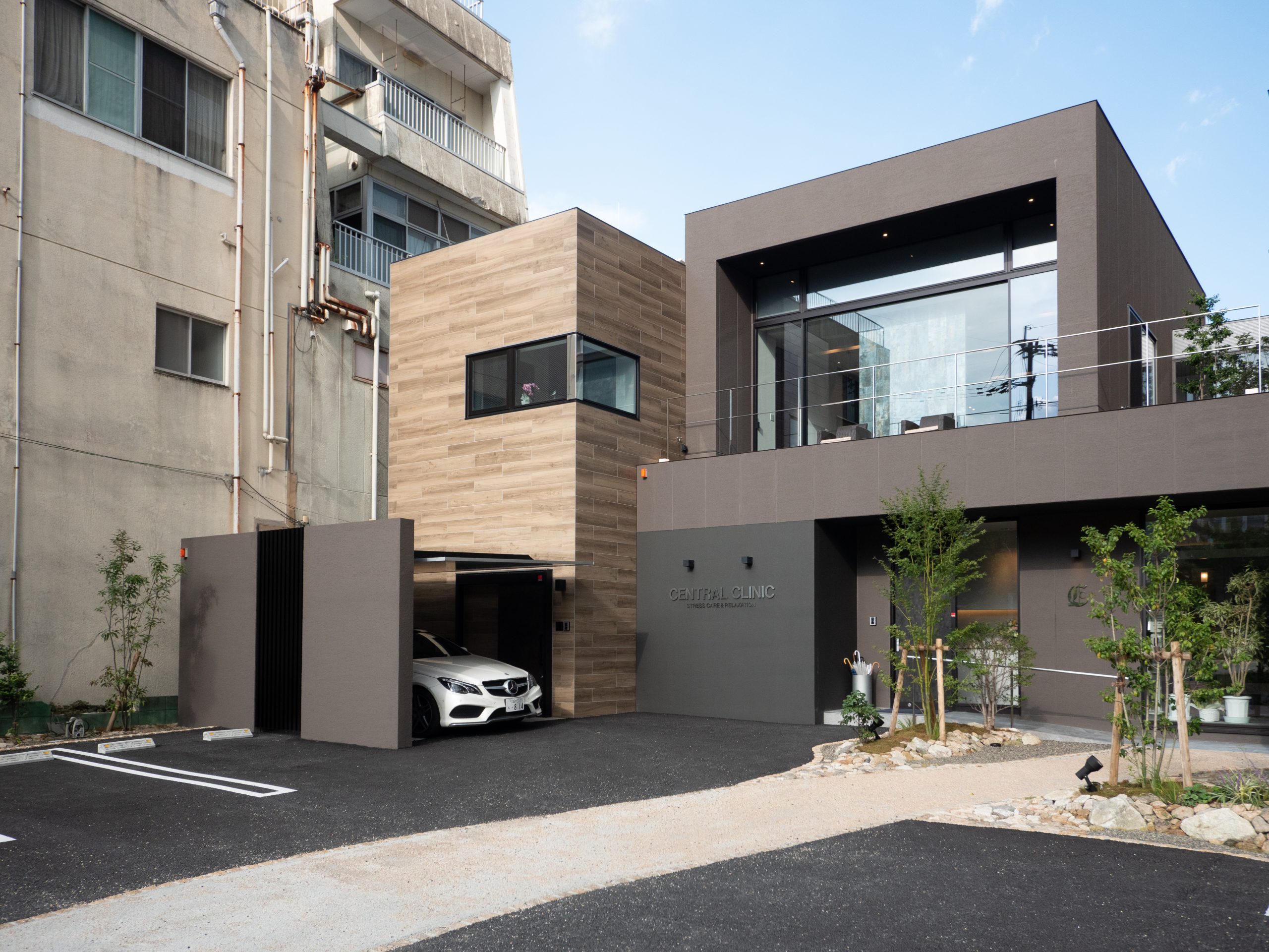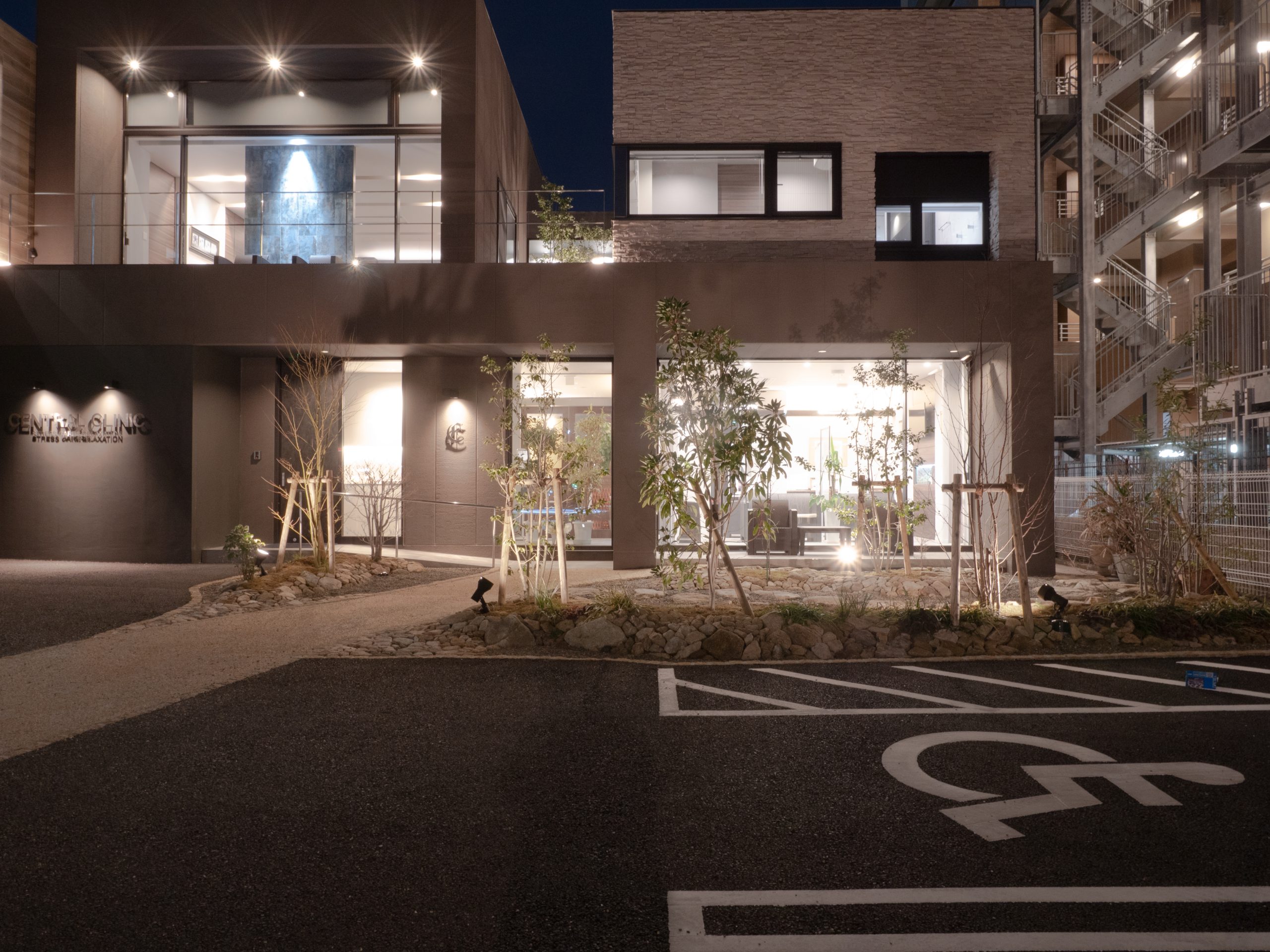 市街地のビルやマンションが立ち並ぶエリアに建つ、2階建てのクリニックです。 外観・内装ともに落ち着きを大切にし、ほどよい高級感を感じられるデザインでまとめました。 人通りの多い道路側には駐車スペースと植栽を配置し、視線をやわらかく遮ることで、来院される方が安心して足を運べる環境を実現しています。 心が休まる、穏やかなクリニックづくりを目指した施工です。