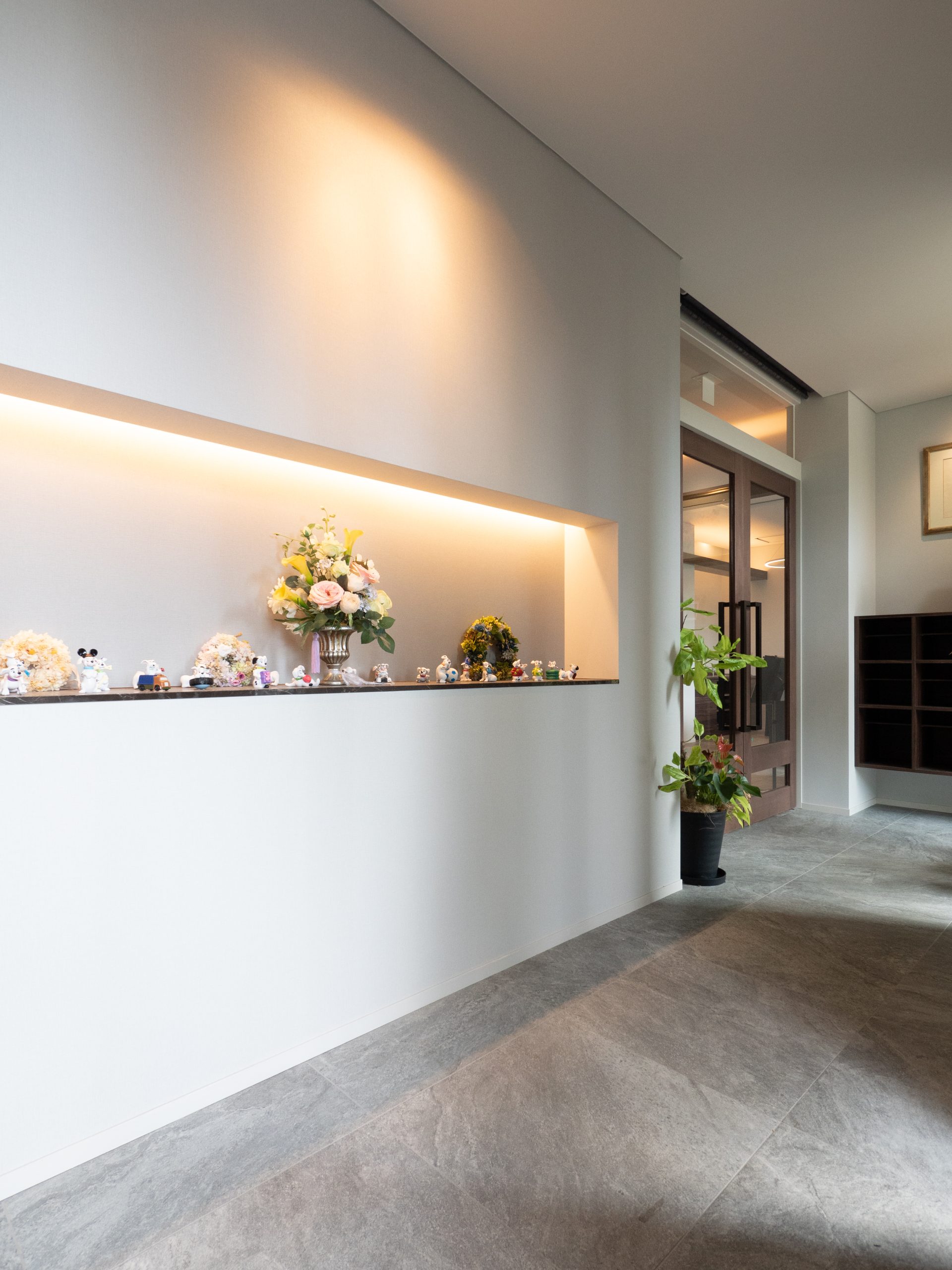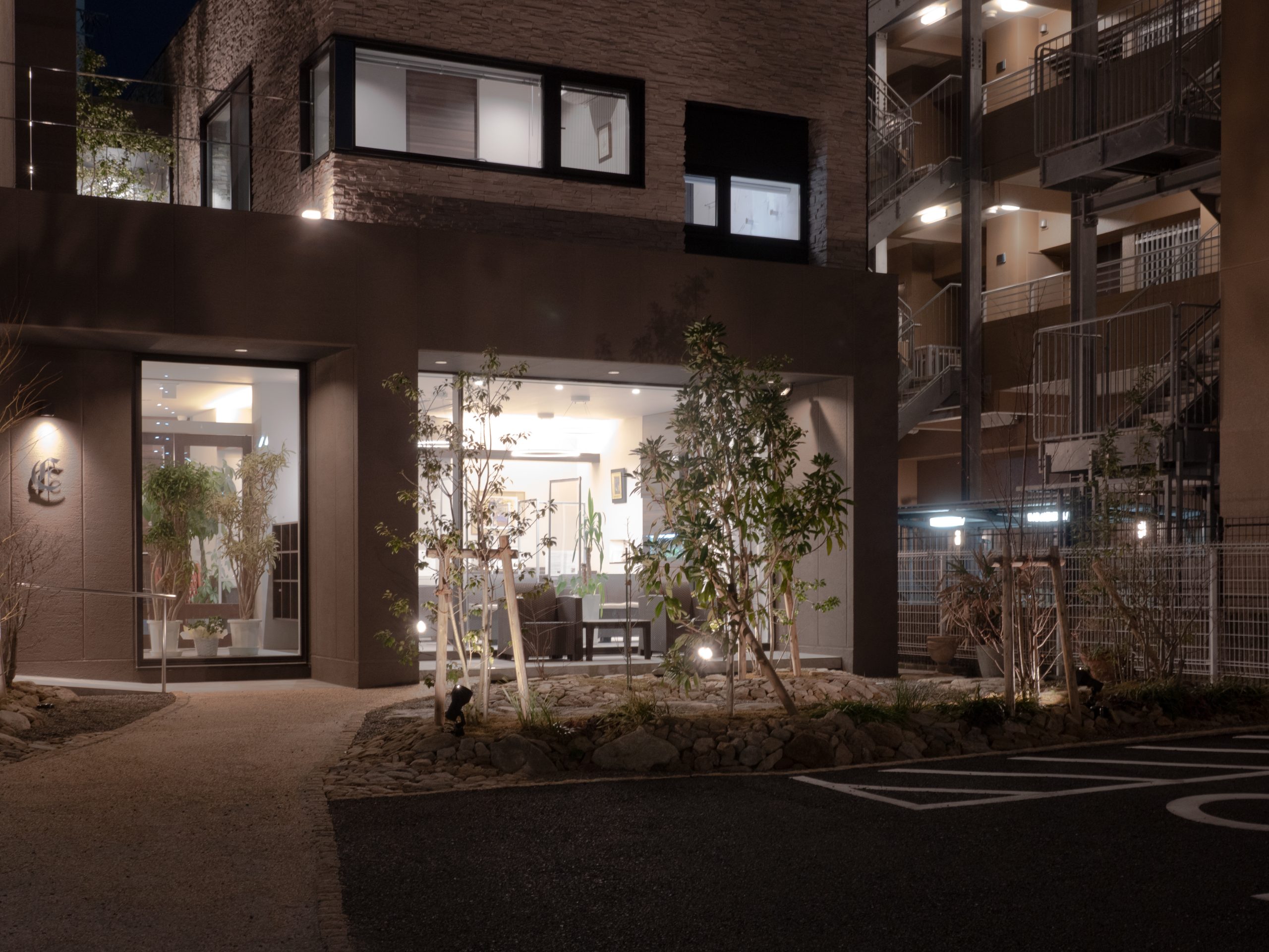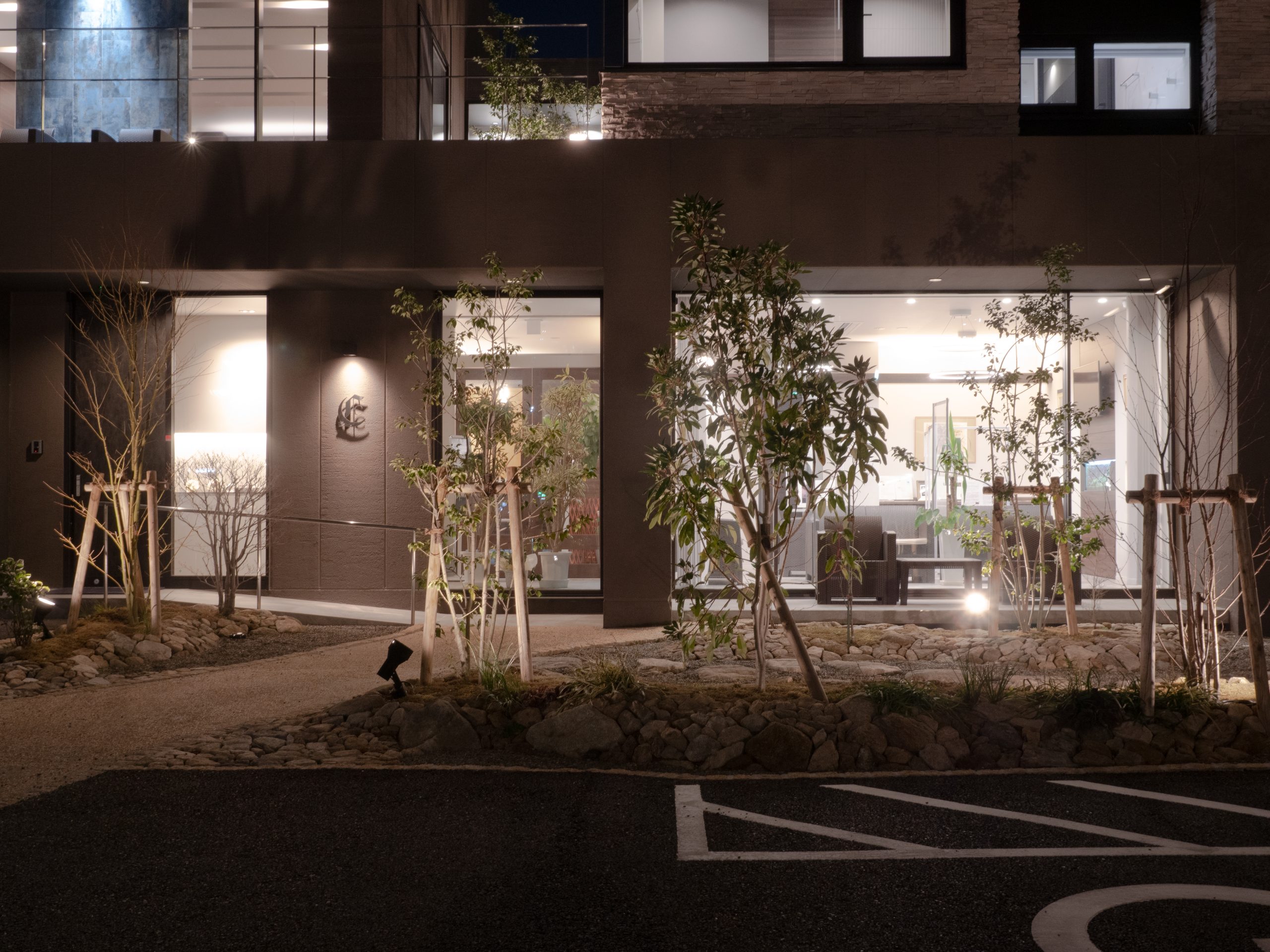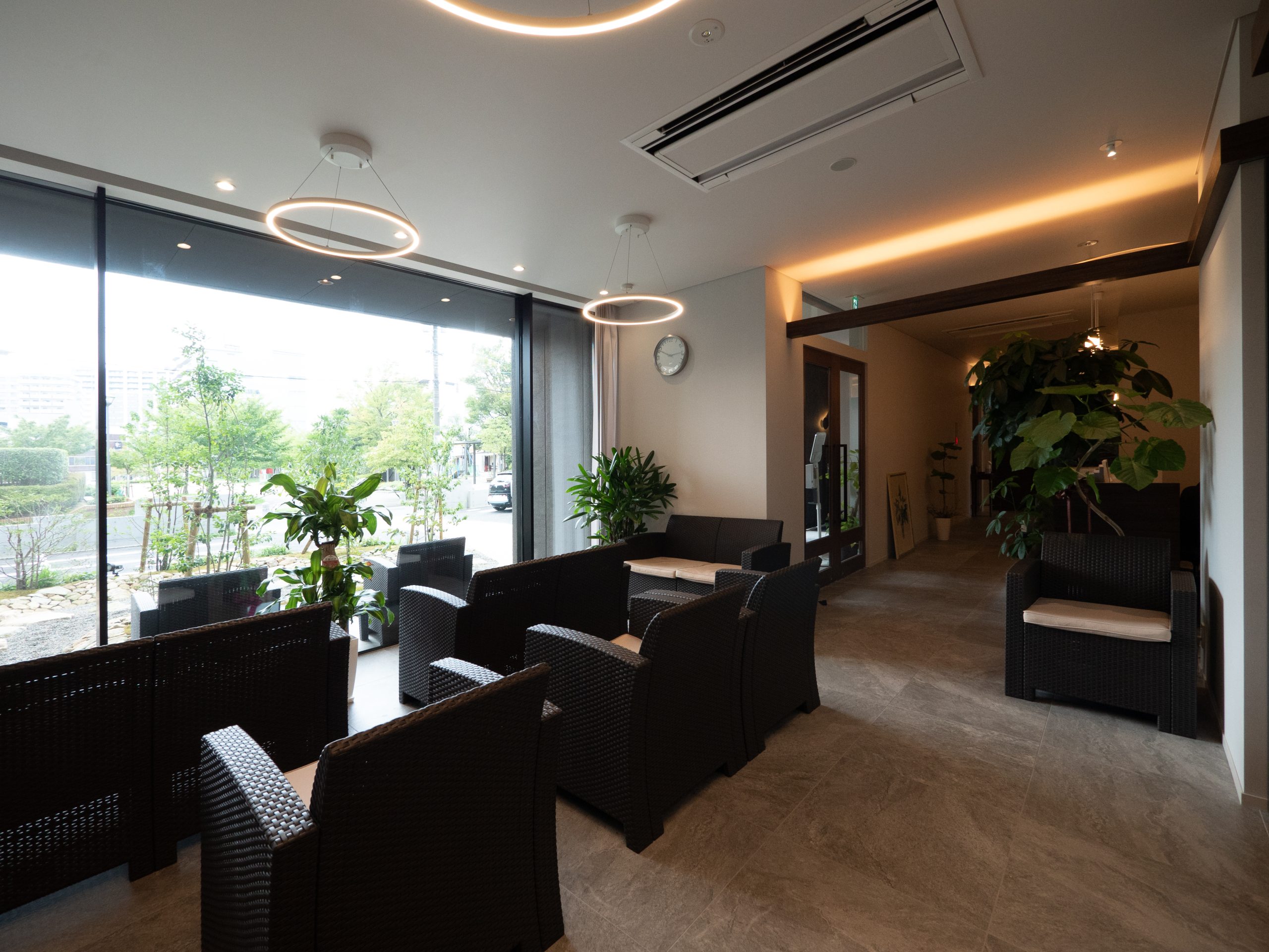 市街地のビルやマンションが立ち並ぶエリアに建つ、2階建てのクリニックです。 外観・内装ともに落ち着きを大切にし、ほどよい高級感を感じられるデザインでまとめました。 人通りの多い道路側には駐車スペースと植栽を配置し、視線をやわらかく遮ることで、来院される方が安心して足を運べる環境を実現しています。 心が休まる、穏やかなクリニックづくりを目指した施工です。