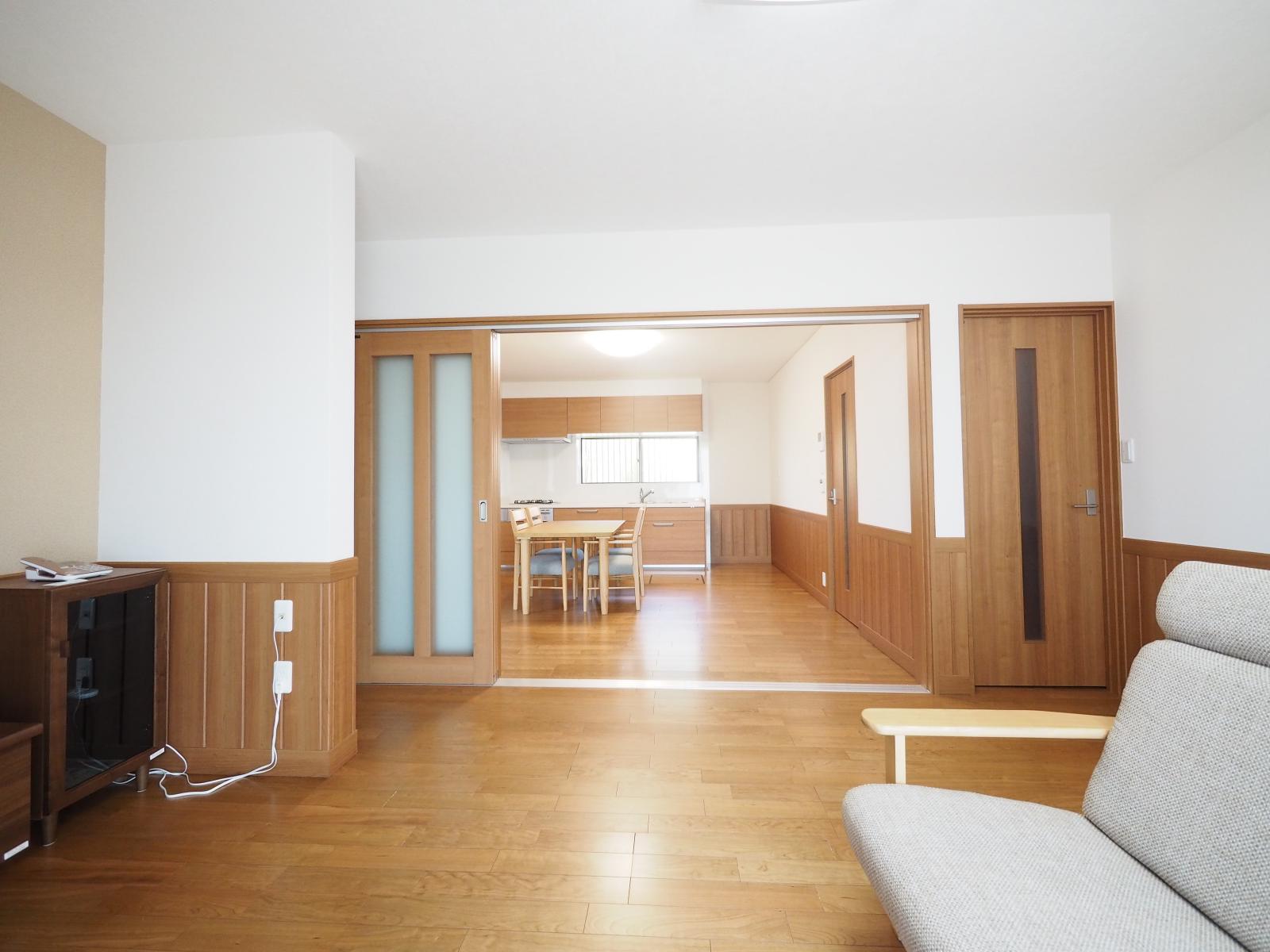 和室リビングを洋室リビングへとリフォームし、過ごしやすい広々としたLDKとなりました。水回りも一新し、快適な住空間へと変わりました。