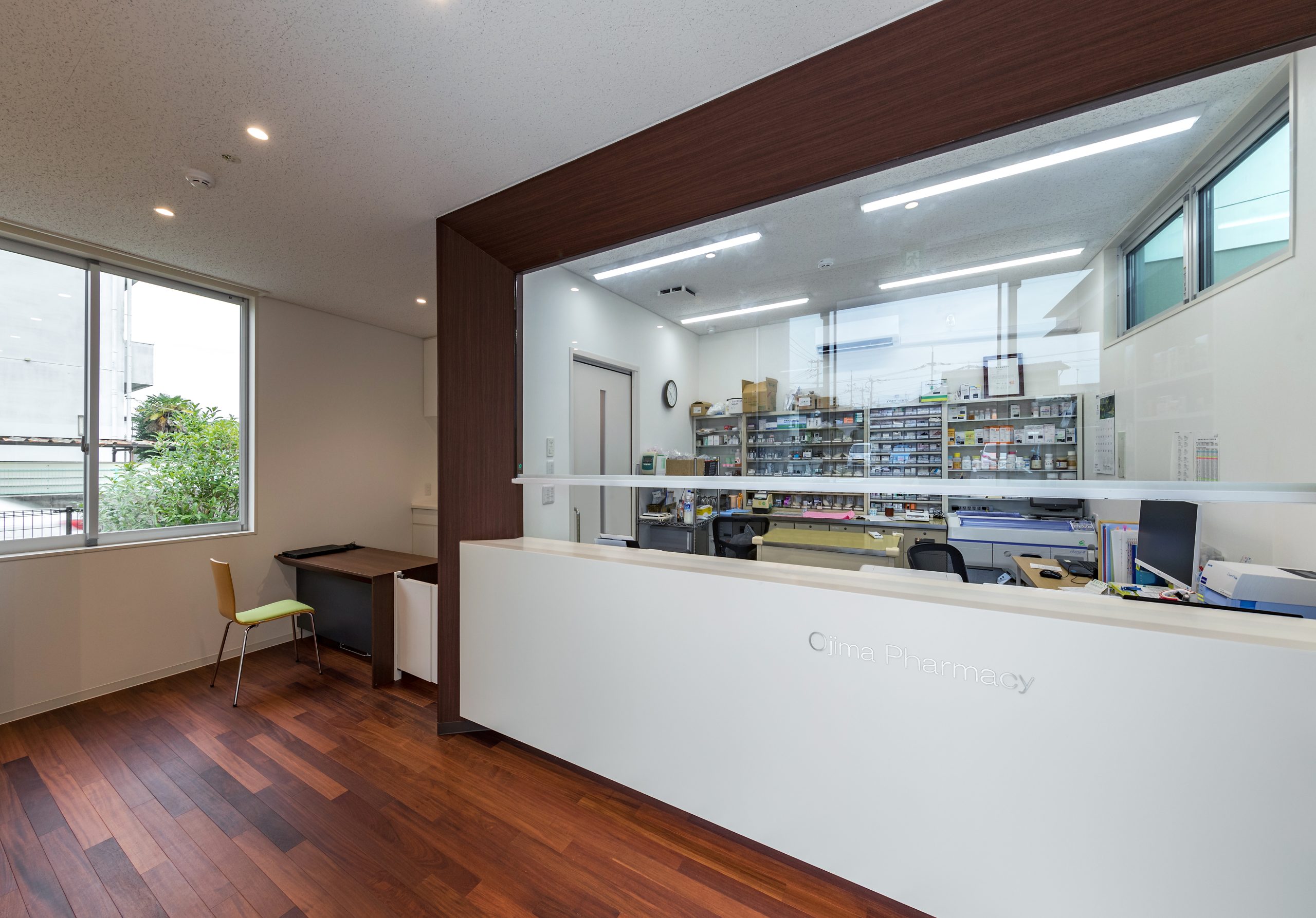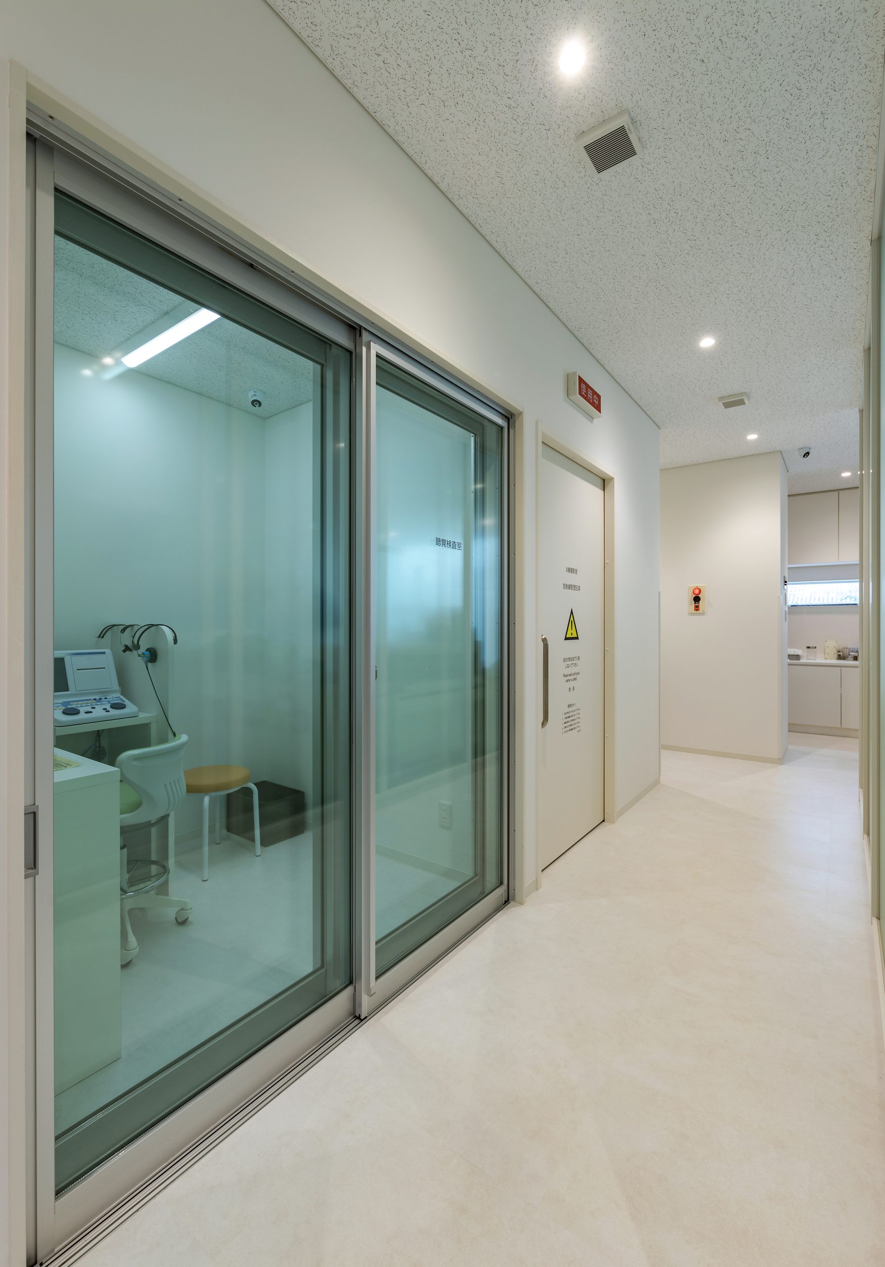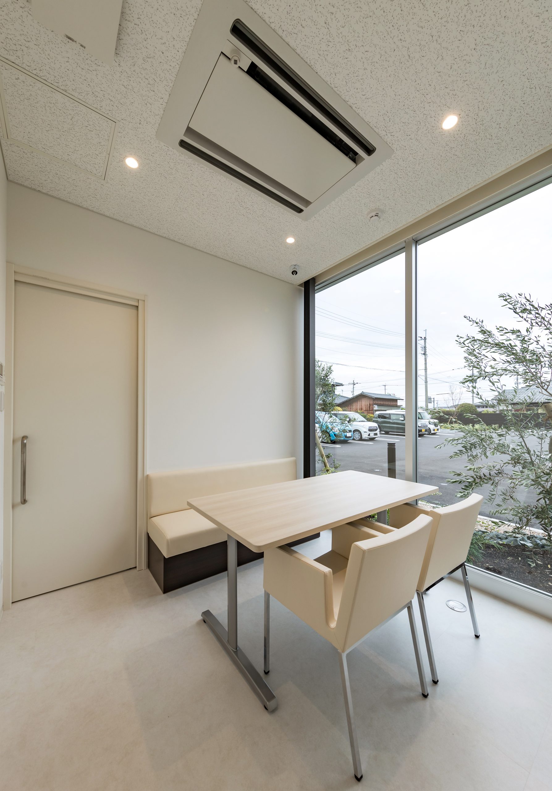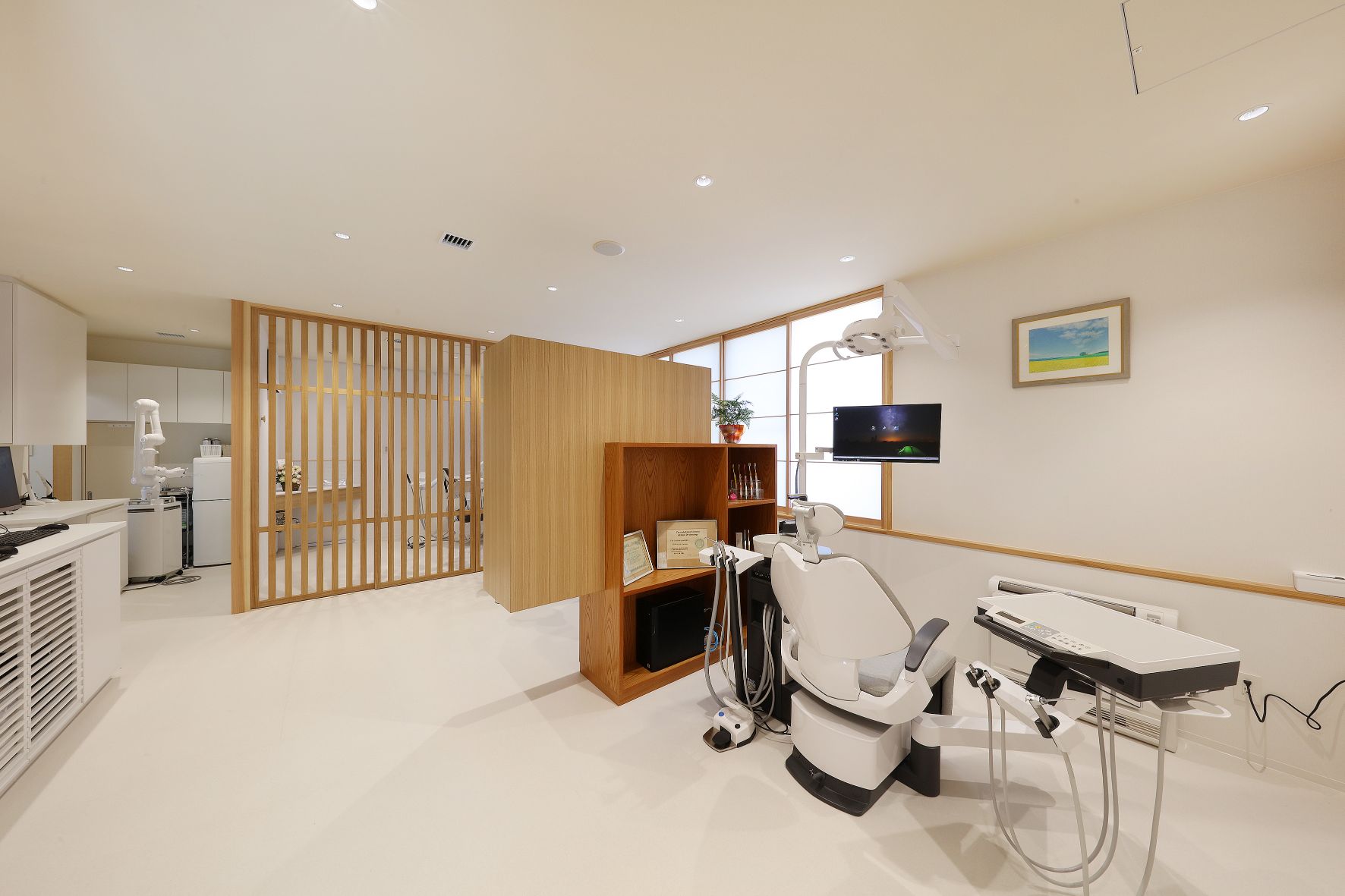 外観はアイボリーを基調に、随所へ黒のアクセントを取り入れることで、やわらかな印象の中にも上質な引き締めを感じるデザインです。 内装は白をベースに木目のブラウンを組み合わせ、患者様がリラックスできる落ち着いた空間を演出。 町並みに自然と溶け込み、地域の方々に親しみを持っていただけるクリニックとなっています。