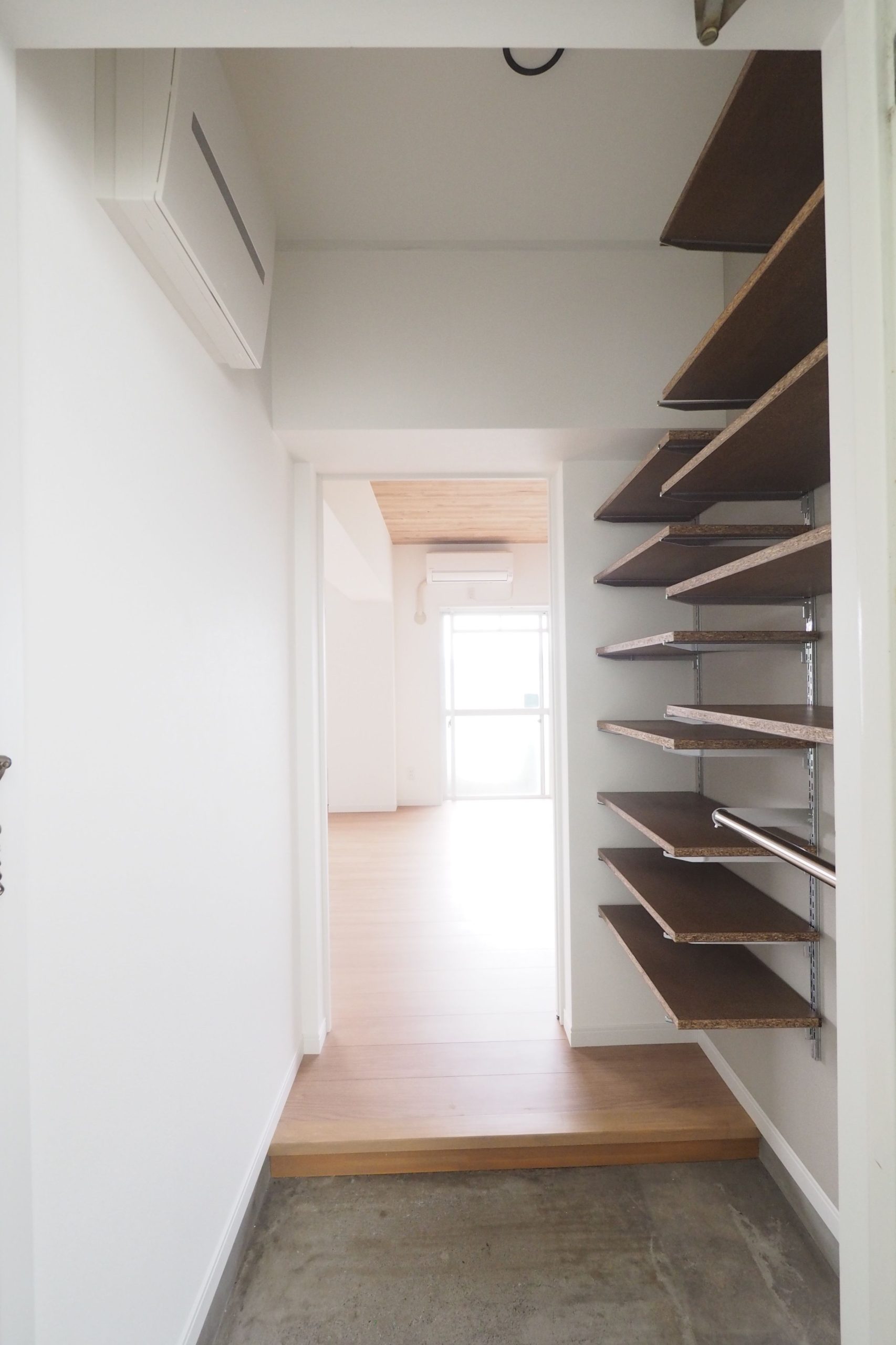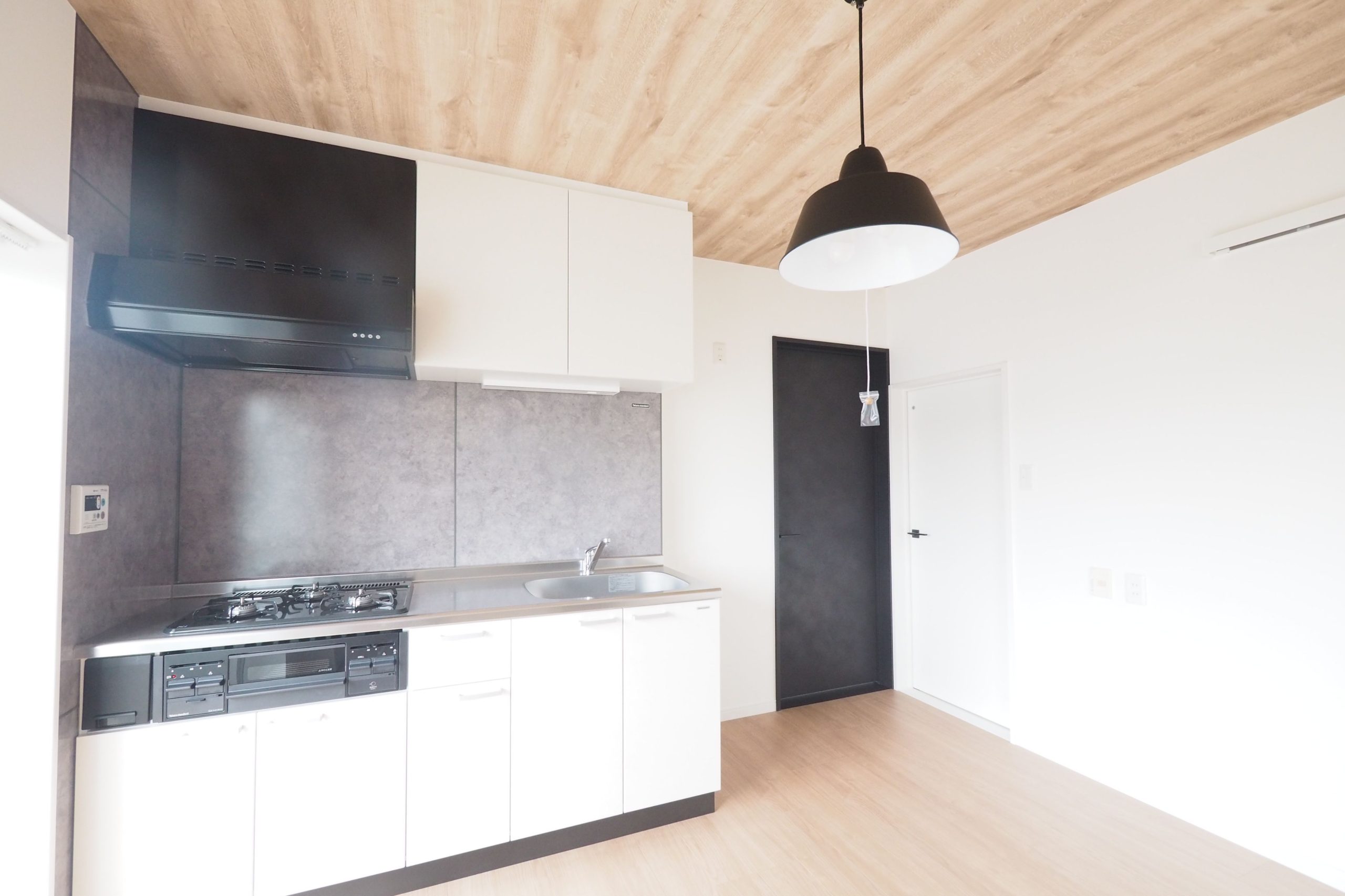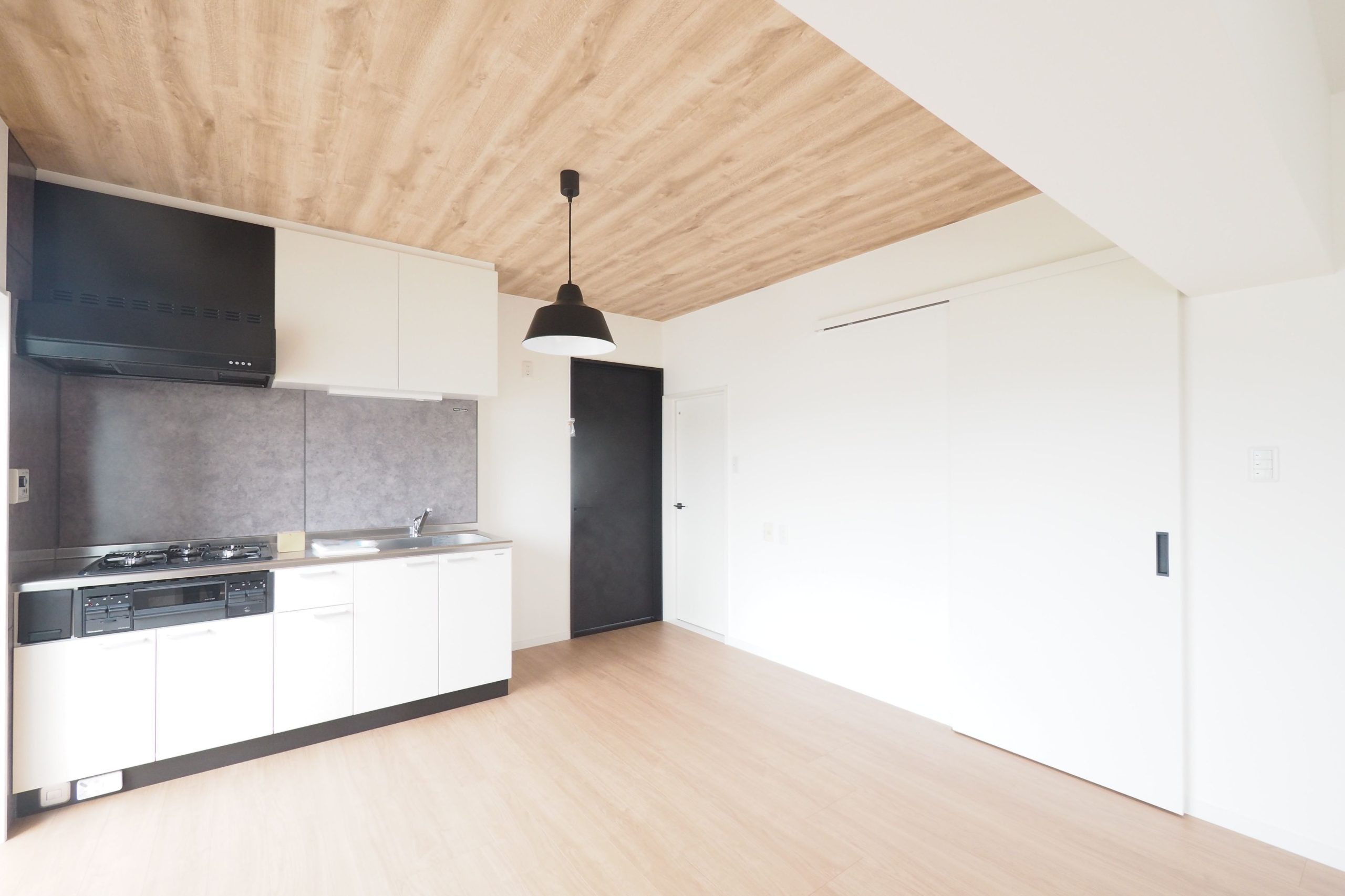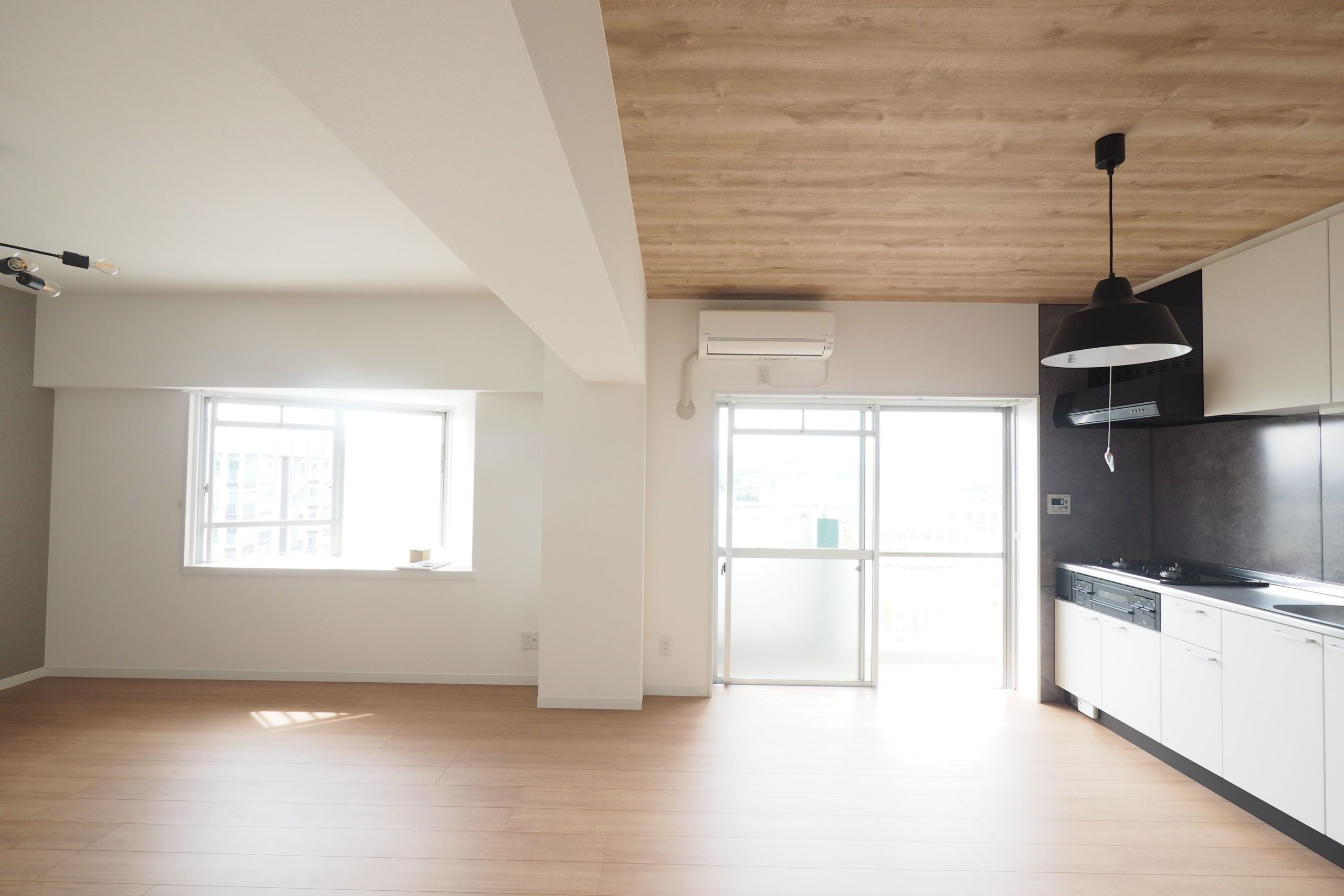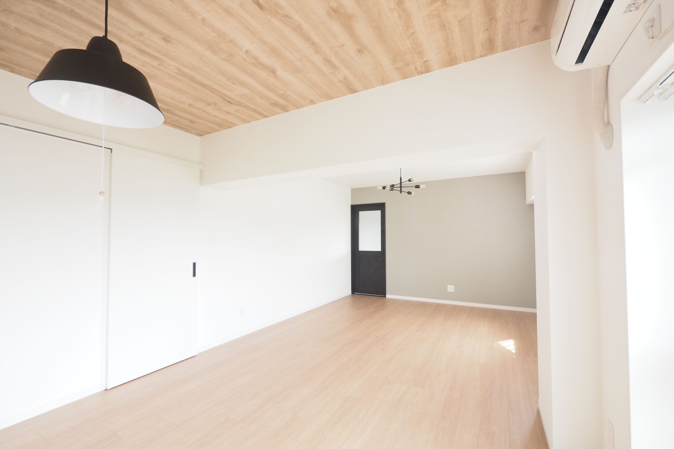 シンプルモダンをコンセプトに大人カジュアルな雰囲気もプラスしたマンションフルリノベーション。既存の和室とダイニングキッチンを広々したLDK空間へ間取りを変更しました。白を基調に木目とグレーをアクセントにした落ち着いて過ごせる空間。水まわりもすべて一新し、気持ちよく生活がスタートできます。