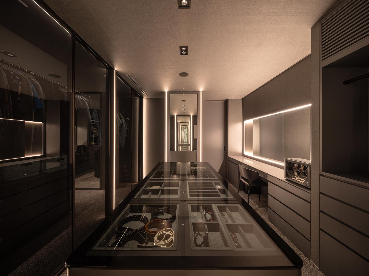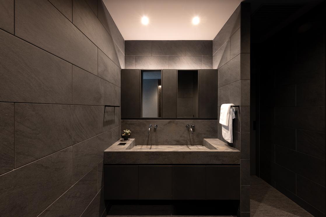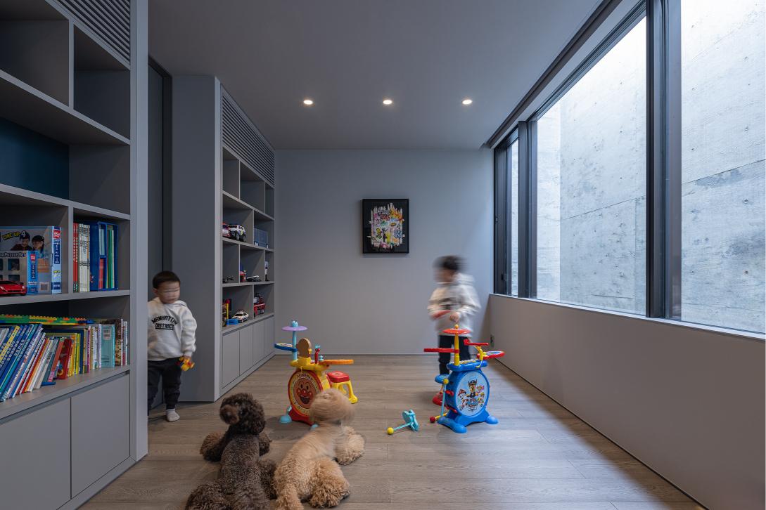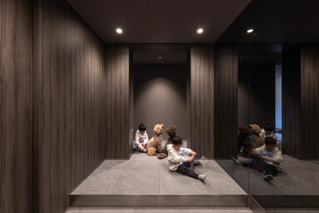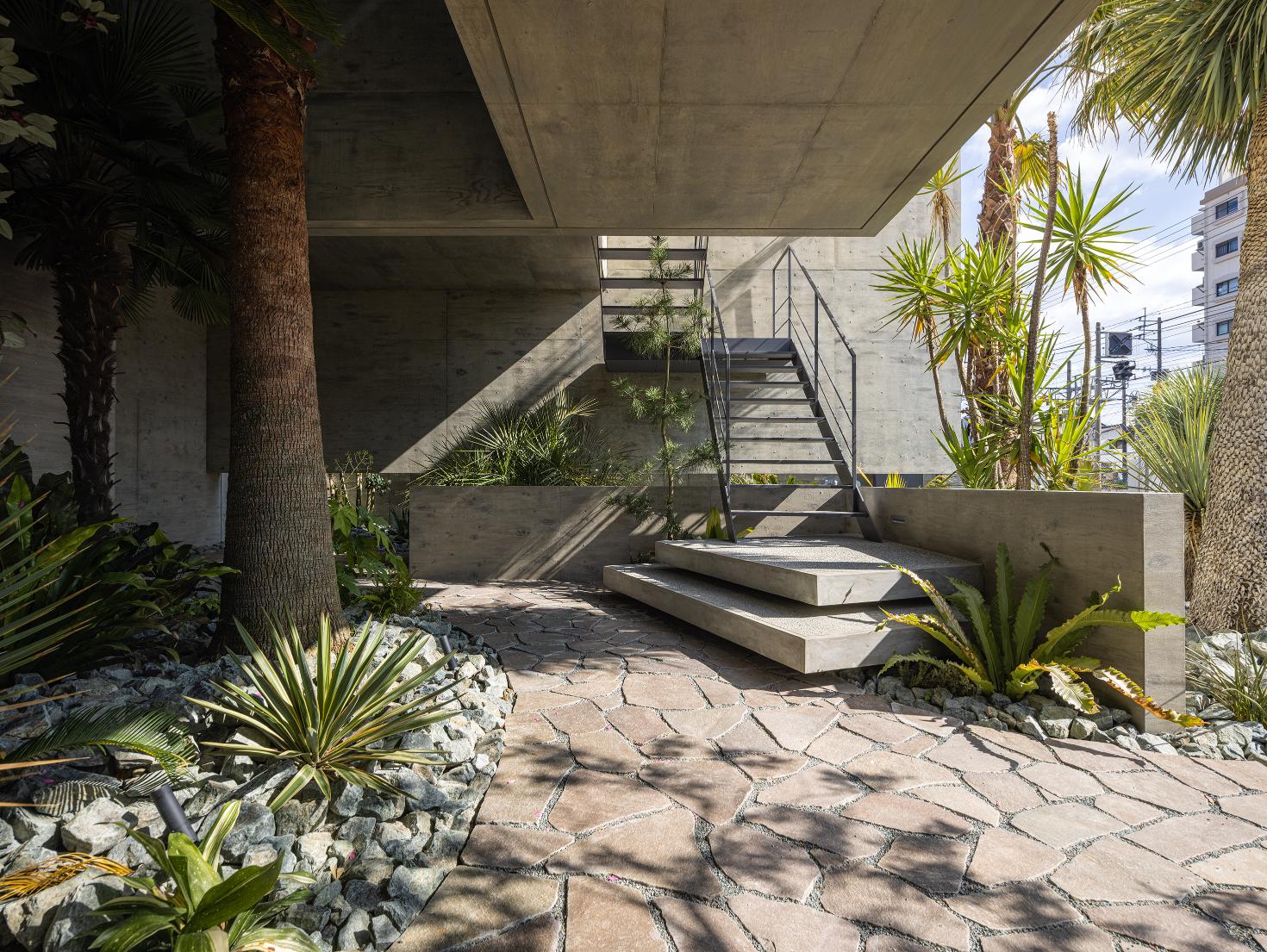 線路沿いに建つRC造3階建ての住宅。 周辺からの視線、騒音、振動、自然災害などの課題を解決しながら、開放的な室内空間を生み出すために、2階を主な居住空間としました。水平方向・垂直方向に光や風、視線が抜ける伸びやかな邸宅を実現しました。