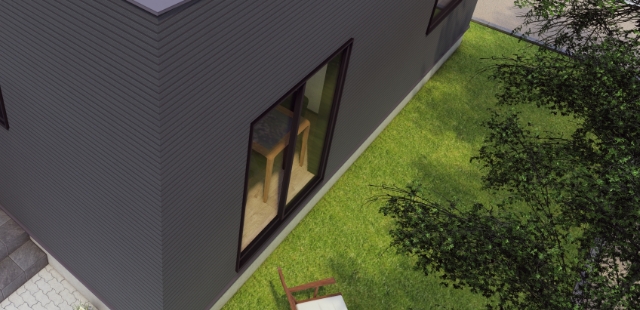 シンプルな箱型形状で建築コストを抑えつつ、