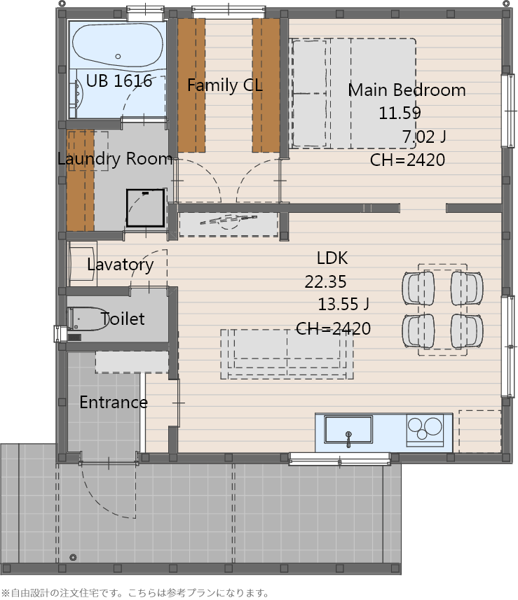 シンプルな平屋では、ひとつひとつこだわった設備仕様によって質の高い空間を実現しています。