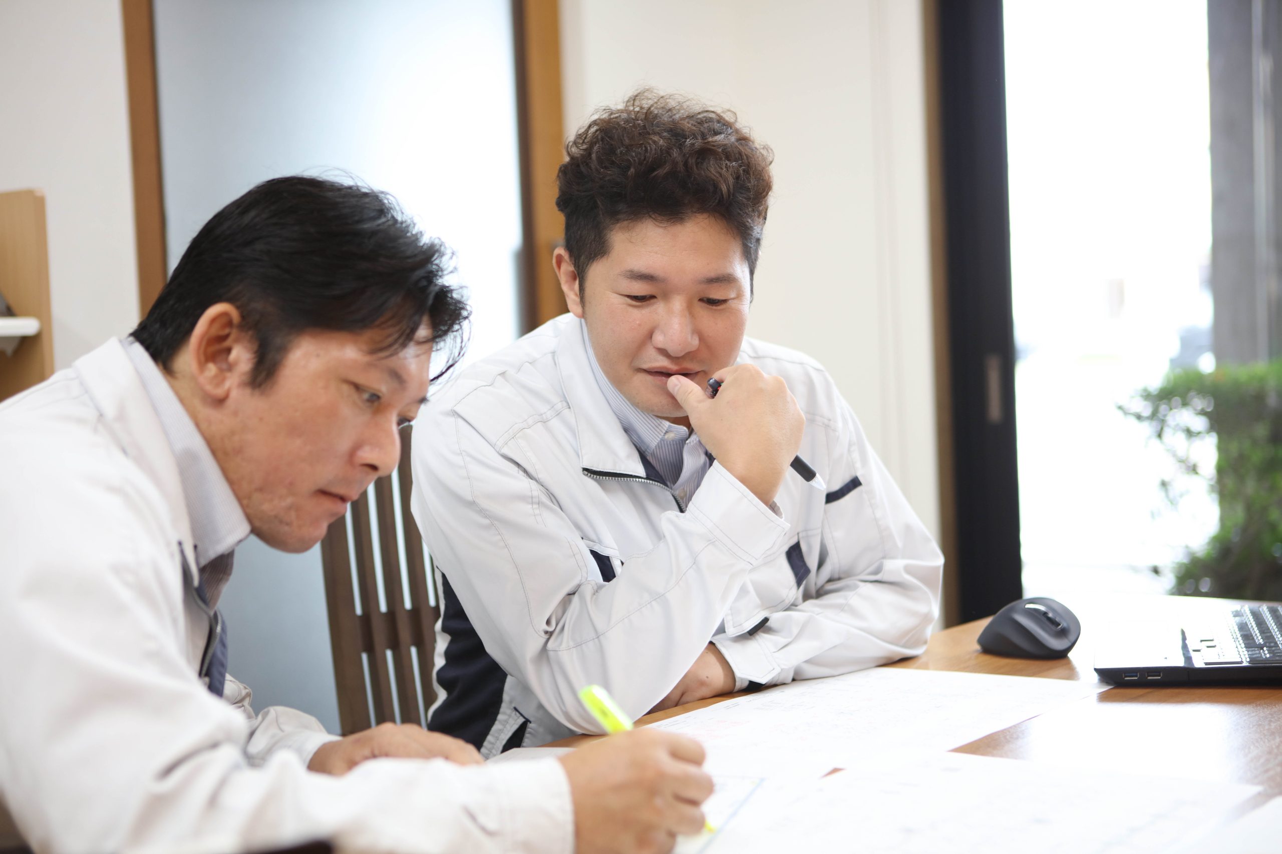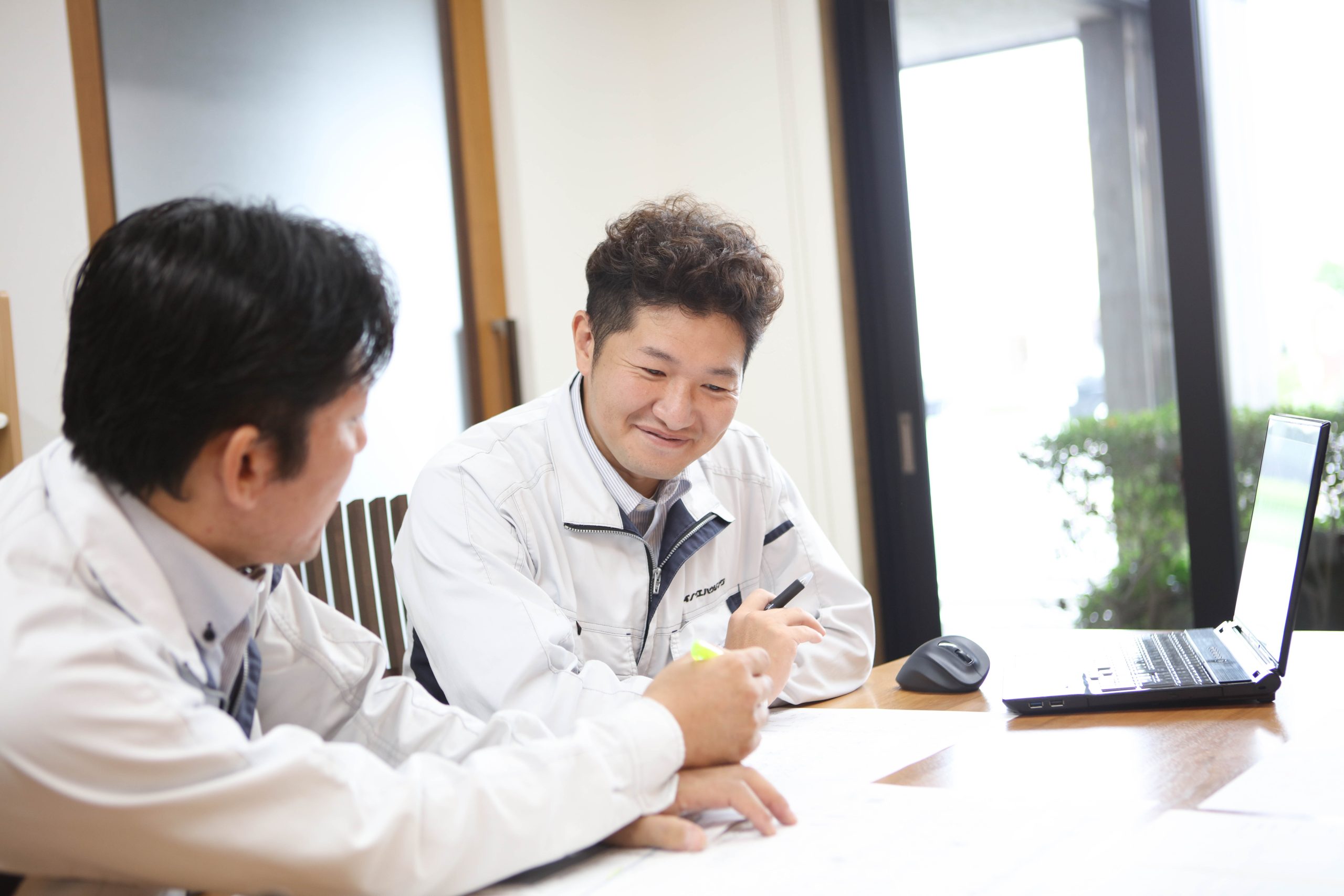 私の業務は現場を管理・指揮する事ですので、まずは現場の不安を取り除く事と、お施主様との打合せ時には、少しでも永く快適な住まいをご提供できるようにアドバイスさせていただき、お客様の代理人という気持ちで現場管理に努めることを心掛けています。
