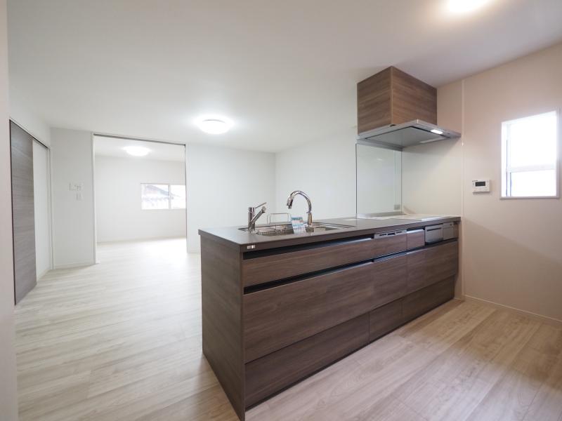 キッチンは人気のペニンシュラ型で家族とのコミュニケーションがとりやすい間取りになっています。お手入れのしやすさや機能が満載の空間に。
